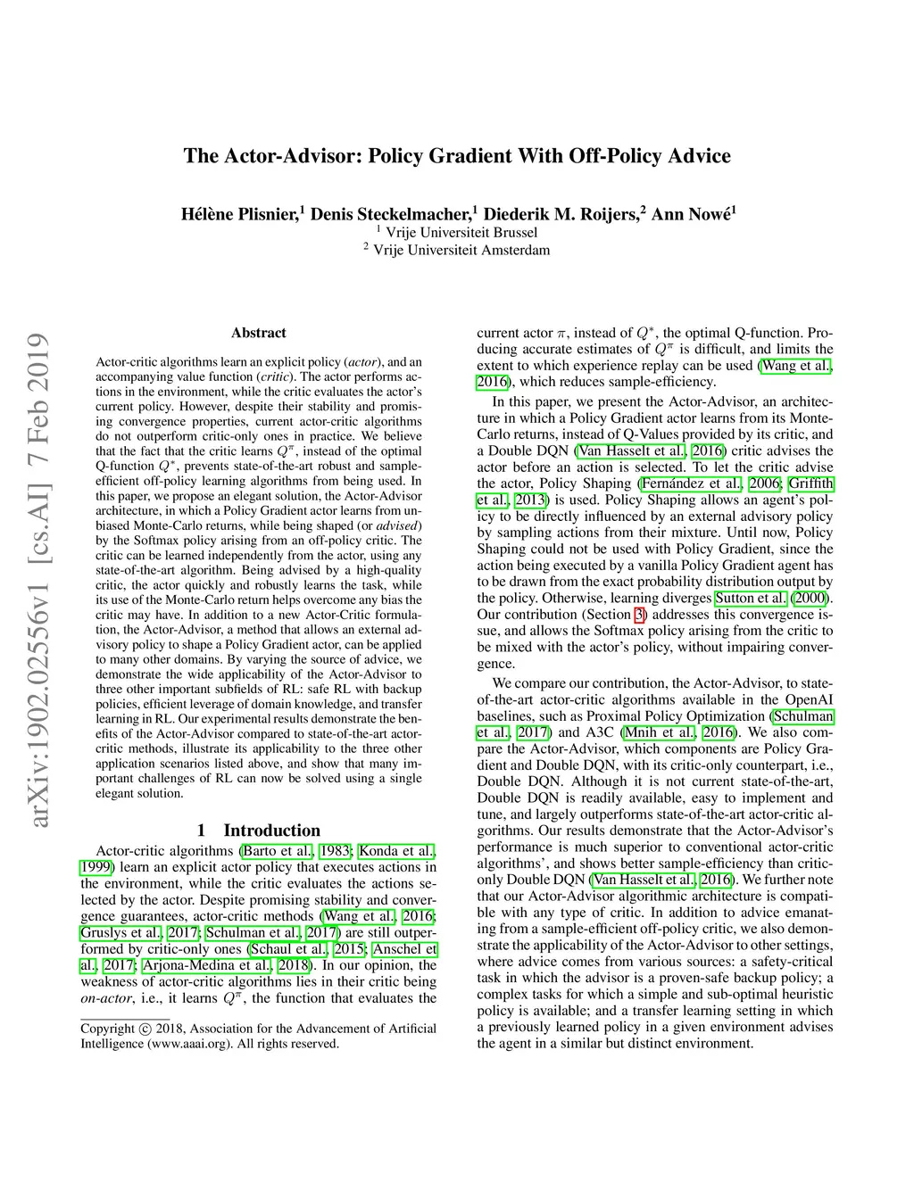 Actor-critic algorithms learn an explicit policy (actor), and an accompanying value function (critic). The actor performs actions in the environment, while the critic evaluates the actor's current policy. However, despite their stability and promising convergence properties, current actor-critic algorithms do not outperform critic-only ones in practice. We believe that the fact that the critic learns Q^pi, instead of the optimal Q-function Q*, prevents state-of-the-art robust and sample-efficient off-policy learning algorithms from being used. In this paper, we propose an elegant solution, the Actor-Advisor architecture, in which a Policy Gradient actor learns from unbiased Monte-Carlo returns, while being shaped (or advised) by the Softmax policy arising from an off-policy critic. The critic can be learned independently from the actor, using any state-of-the-art algorithm. Being advised by a high-quality critic, the actor quickly and robustly learns the task, while its use of the Monte-Carlo return helps overcome any bias the critic may have. In addition to a new Actor-Critic formulation, the Actor-Advisor, a method that allows an external advisory policy to shape a Policy Gradient actor, can be applied to many other domains. By varying the source of advice, we demonstrate the wide applicability of the Actor-Advisor to three other important subfields of RL: safe RL with backup policies, efficient leverage of domain knowledge, and transfer learning in RL. Our experimental results demonstrate the benefits of the Actor-Advisor compared to state-of-the-art actor-critic methods, illustrate its applicability to the three other application scenarios listed above, and show that many important challenges of RL can now be solved using a single elegant solution.