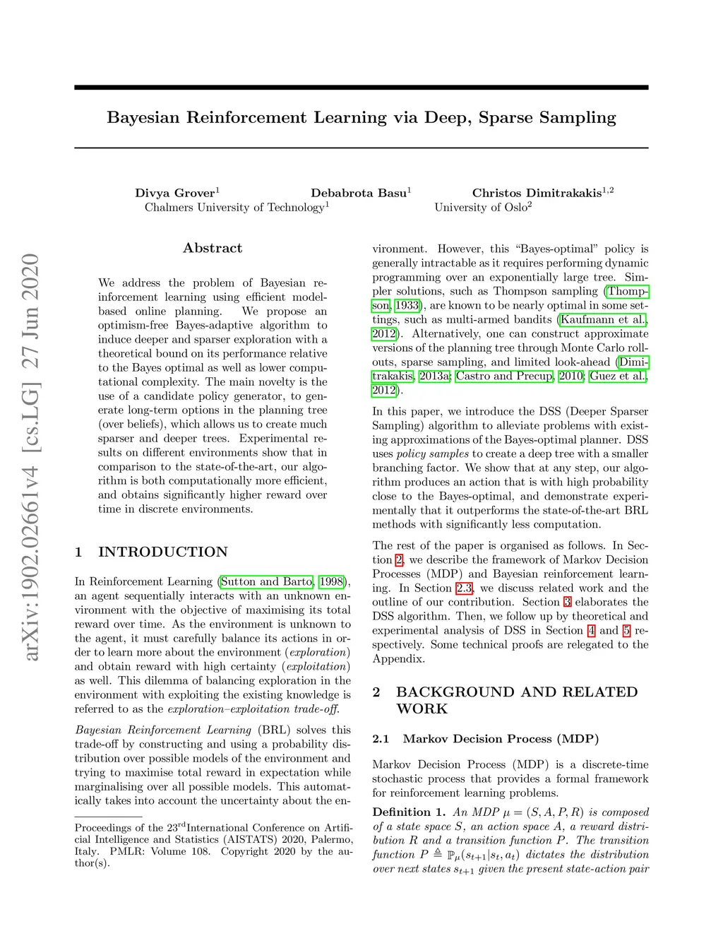 Bayesian Reinforcement Learning via Deep, Sparse Sampling