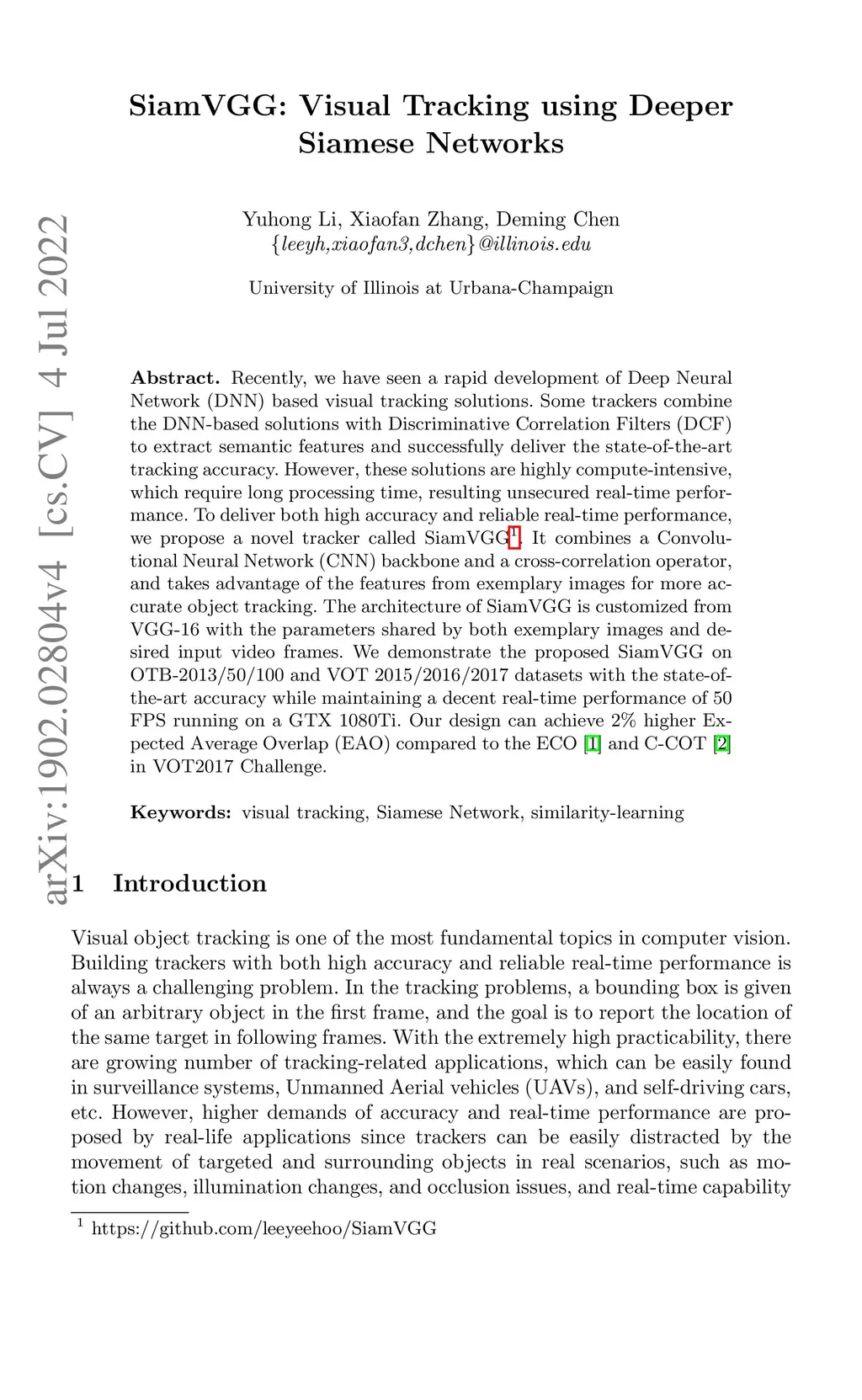 SiamVGG: Visual Tracking using Deeper Siamese Networks