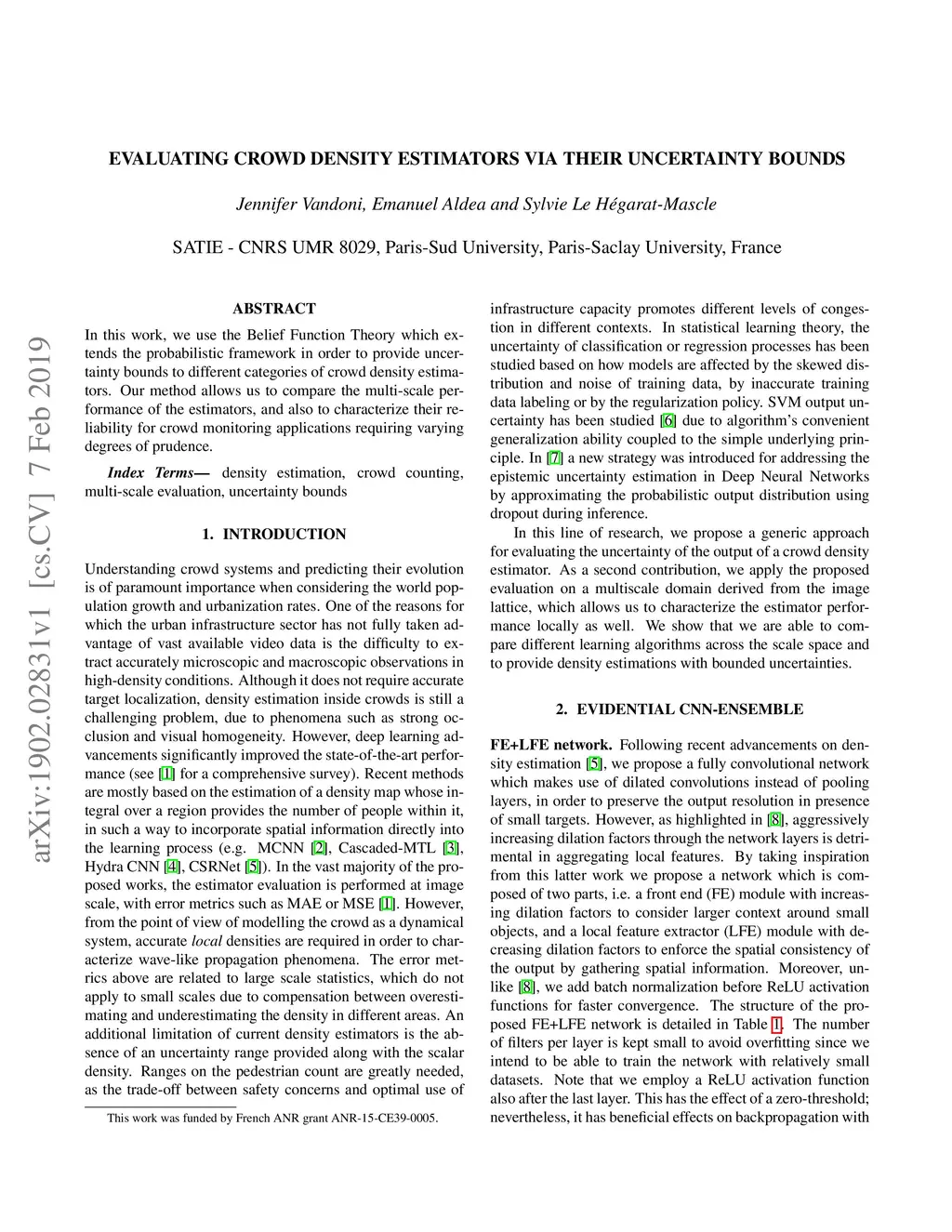In this work, we use the Belief Function Theory which extends the probabilistic framework in order to provide uncertainty bounds to different categories of crowd density estimators. Our method allows us to compare the multi-scale performance of the estimators, and also to characterize their reliability for crowd monitoring applications requiring varying degrees of prudence.