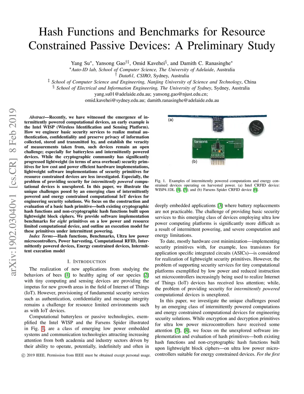 Hash Functions and Benchmarks for Resource Constrained Passive Devices: