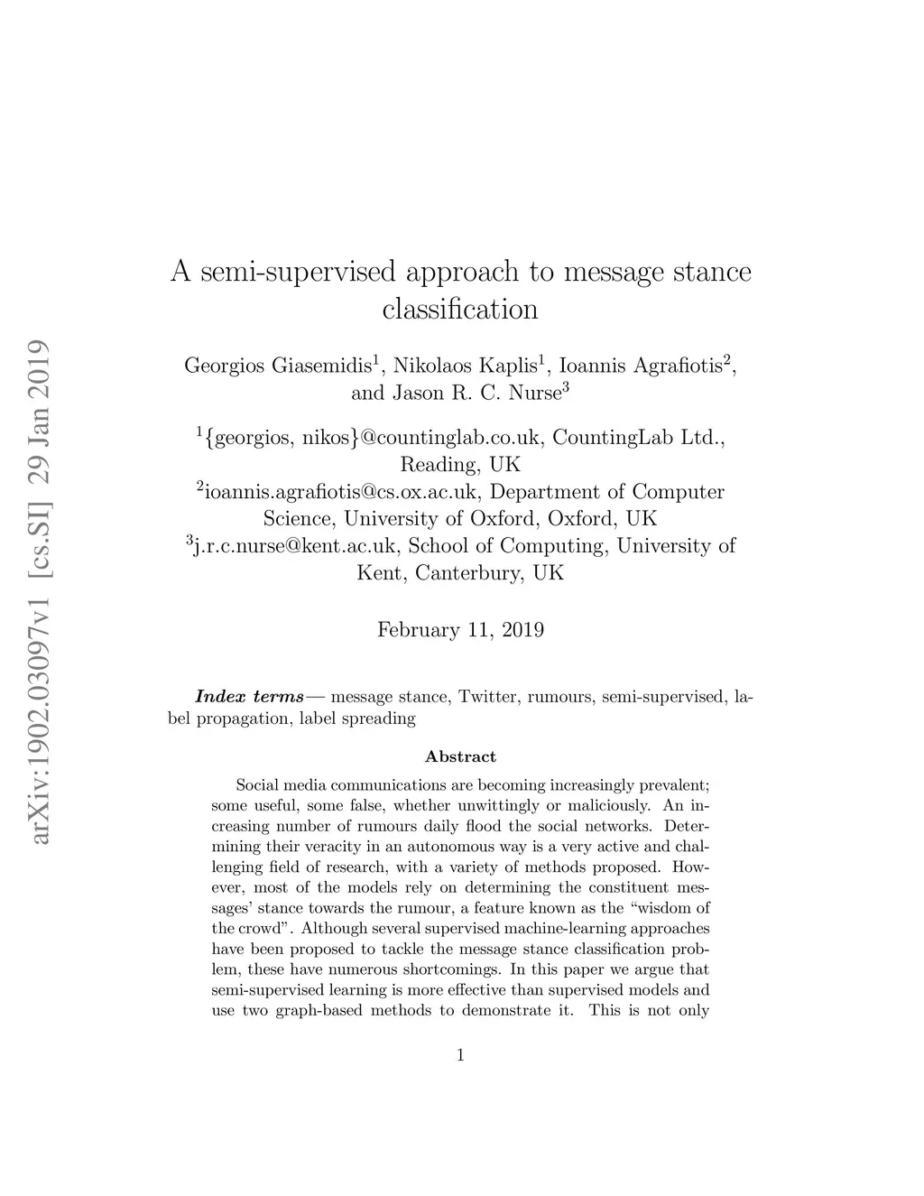 A semi-supervised approach to message stance classification