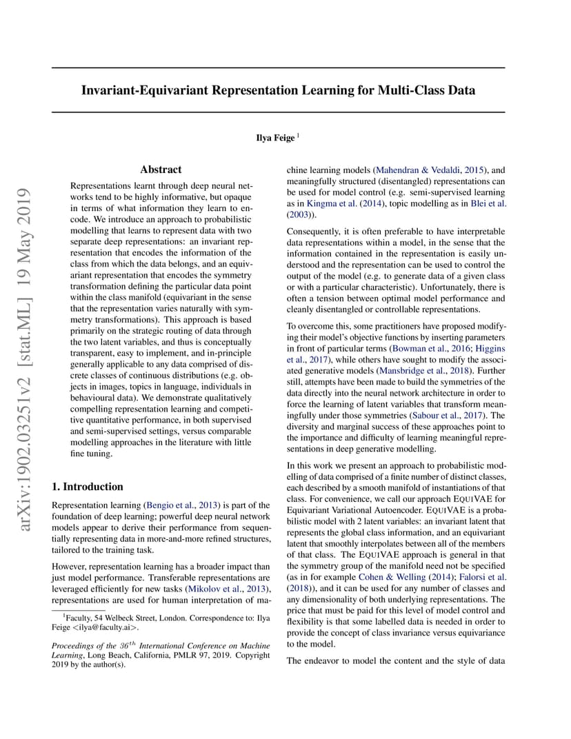 Invariant-equivariant representation learning for multi-class data