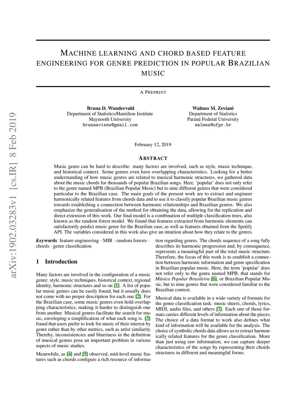 Machine learning and chord based feature engineering for genre