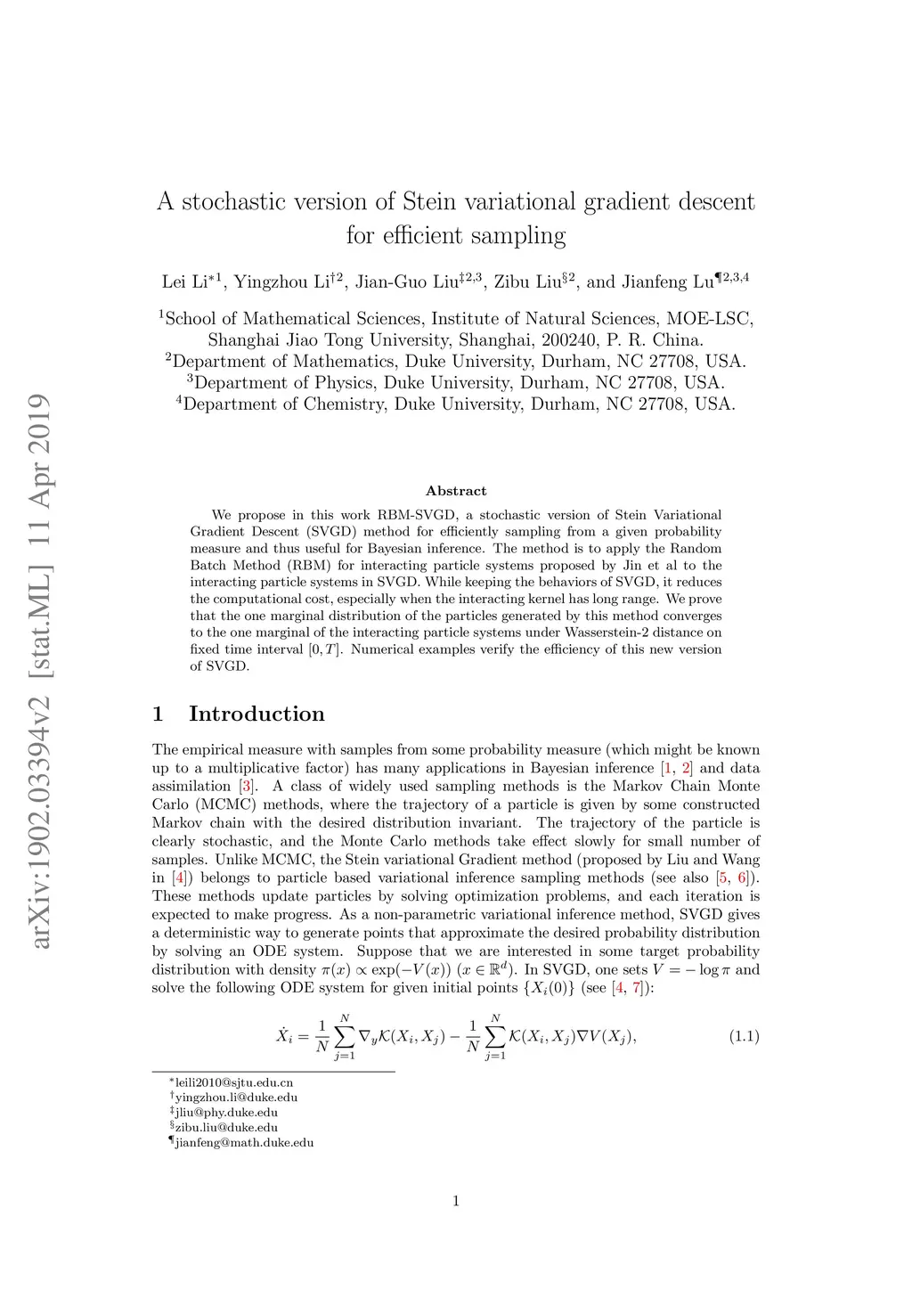 A stochastic version of Stein Variational Gradient Descent for efficient
