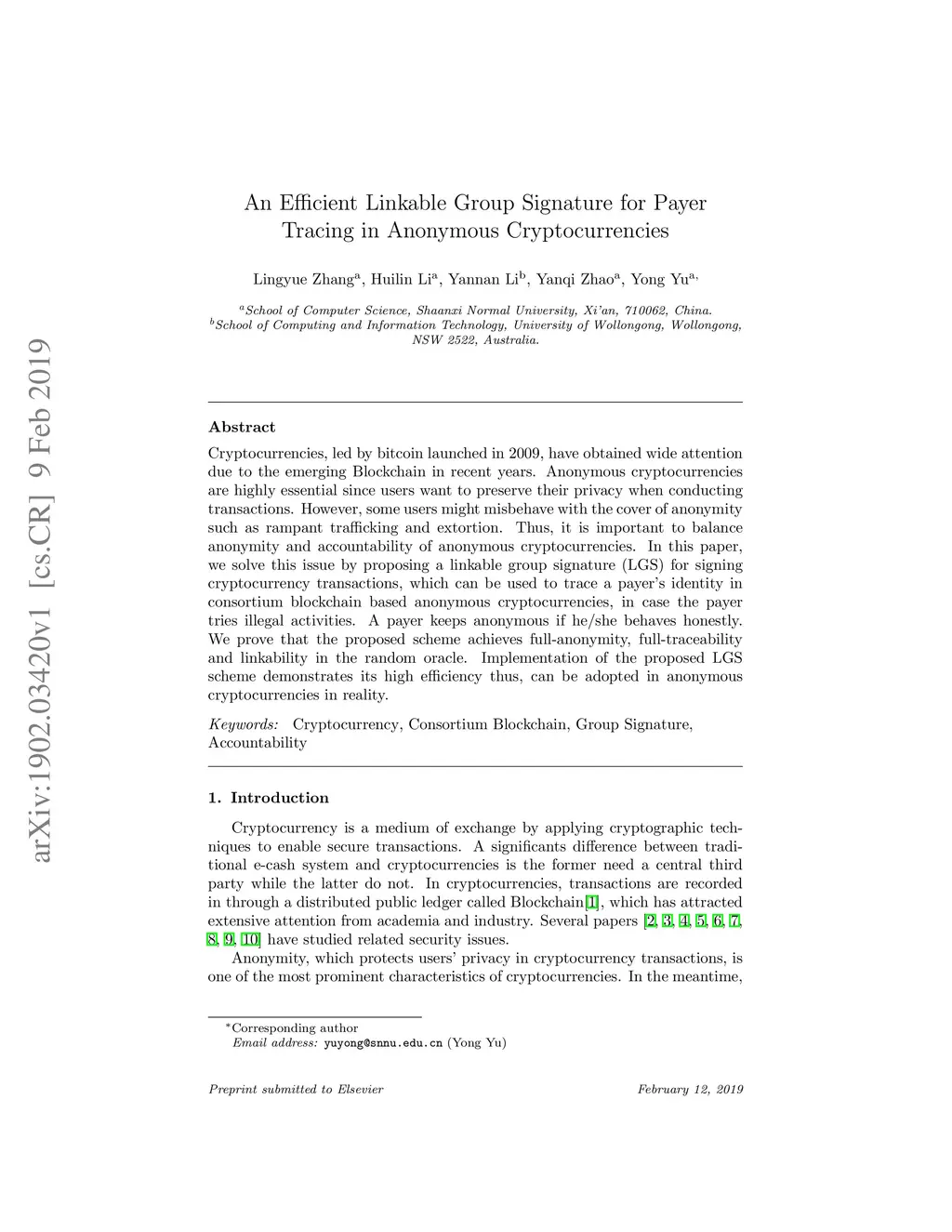 Cryptocurrencies, led by bitcoin launched in 2009, have obtained wide attention due to the emerging Blockchain in recent years. Anonymous cryptocurrencies are highly essential since users want to preserve their privacy when conducting transactions. However, some users might misbehave with the cover of anonymity such as rampant trafficking and extortion. Thus, it is important to balance anonymity and accountability of anonymous cryptocurrencies. In this paper, we solve this issue by proposing a linkable group signature (LGS) for signing cryptocurrency transactions, which can be used to trace a payer's identity in consortium blockchain based anonymous cryptocurrencies, in case the payer tries illegal activities. A payer keeps anonymous if he/she behaves honestly. We prove that the proposed scheme achieves full-anonymity, full-traceability and linkability in the random oracle. Implementation of the proposed LGS scheme demonstrates its high efficiency thus, can be adopted in anonymous cryptocurrencies in reality.