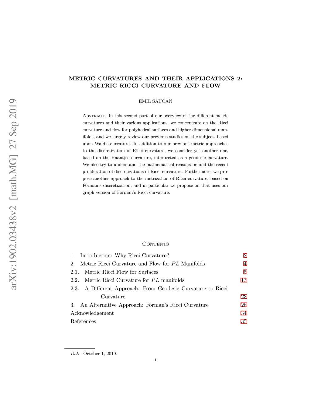 In this second part of our overview of the different metric curvatures and their various applications, we concentrate on the Ricci curvature and flow for polyhedral surfaces and higher dimensional manifolds, and we largely review our previous studies on the subject, based upon Wald's curvature. In addition to our previous metric approaches to the discretization of Ricci curvature, we consider yet another one, based on the Haantjes curvature, interpreted as a geodesic curvature. We also try to understand the mathematical reasons behind the recent proliferation of discretizations of Ricci curvature. Furthermore, we propose another approach to the metrization of Ricci curvature, based on Forman's discretization, and in particular we propose on that uses our graph version of Forman's Ricci curvature.