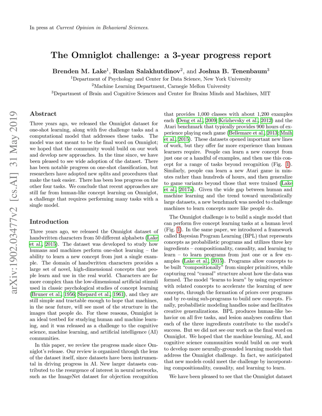 Three years ago, we released the Omniglot dataset for one-shot learning, along with five challenge tasks and a computational model that addresses these tasks. The model was not meant to be the final word on Omniglot; we hoped that the community would build on our work and develop new approaches. In the time since, we have been pleased to see wide adoption of the dataset. There has been notable progress on one-shot classification, but researchers have adopted new splits and procedures that make the task easier. There has been less progress on the other four tasks. We conclude that recent approaches are still far from human-like concept learning on Omniglot, a challenge that requires performing many tasks with a single model.
