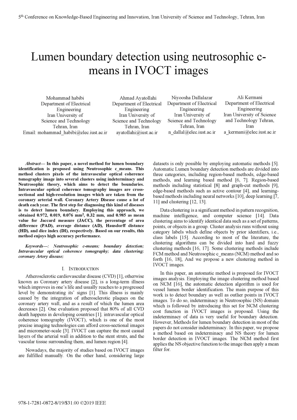 Lumen boundary detection using neutrosophic c-means in IVOCT images