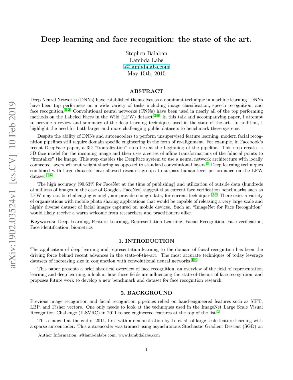 Deep Neural Networks (DNNs) have established themselves as a dominant technique in machine learning. DNNs have been top performers on a wide variety of tasks including image classification, speech recognition, and face recognition. Convolutional neural networks (CNNs) have been used in nearly all of the top performing methods on the Labeled Faces in the Wild (LFW) dataset. In this talk and accompanying paper, I attempt to provide a review and summary of the deep learning techniques used in the state-of-the-art. In addition, I highlight the need for both larger and more challenging public datasets to benchmark these systems. The high accuracy (99.63% for FaceNet at the time of publishing) and utilization of outside data (hundreds of millions of images in the case of Google's FaceNet) suggest that current face verification benchmarks such as LFW may not be challenging enough, nor provide enough data, for current techniques. There exist a variety of organizations with mobile photo sharing applications that would be capable of releasing a very large scale and highly diverse dataset of facial images captured on mobile devices. Such an "ImageNet for Face Recognition" would likely receive a warm welcome from researchers and practitioners alike.