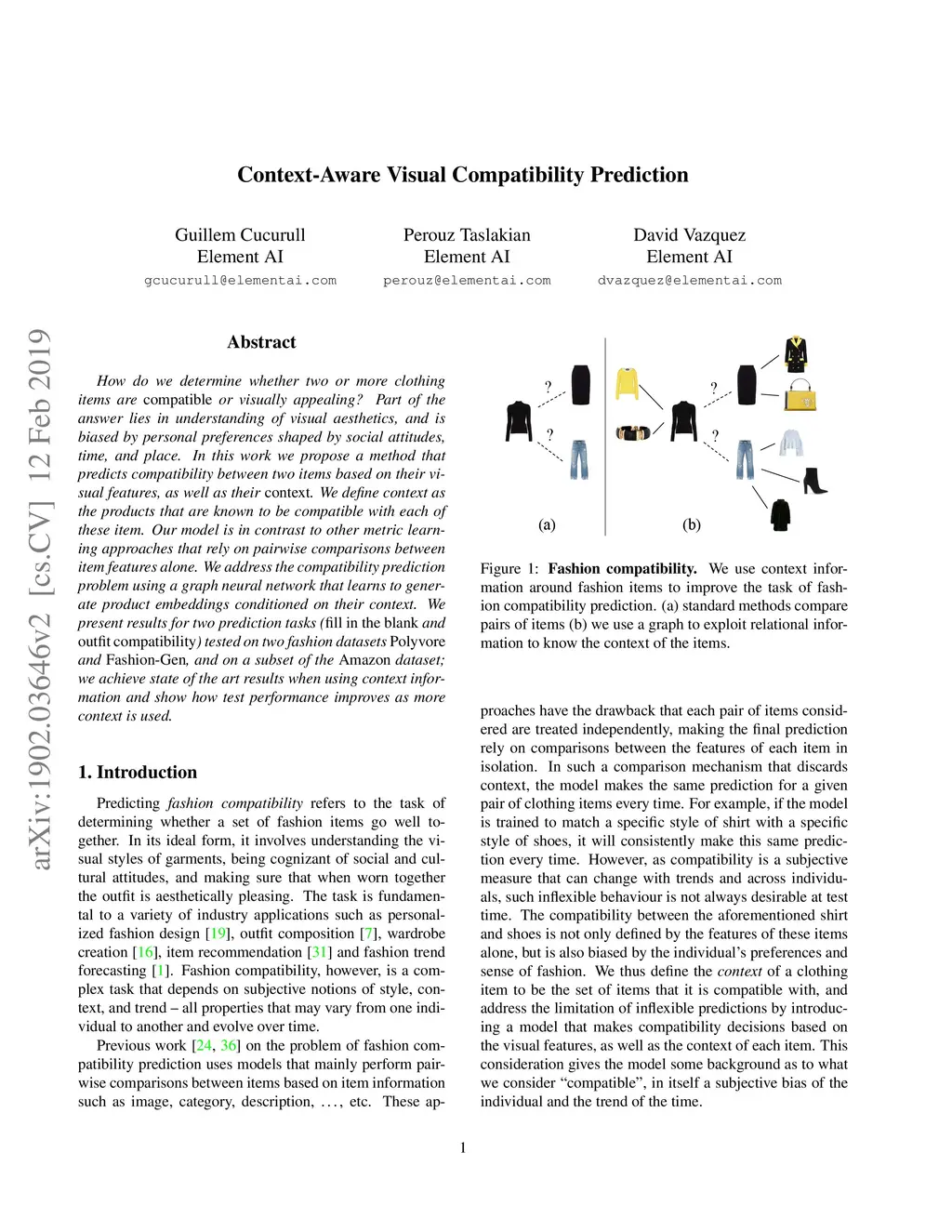 How do we determine whether two or more clothing items are compatible or visually appealing? Part of the answer lies in understanding of visual aesthetics, and is biased by personal preferences shaped by social attitudes, time, and place. In this work we propose a method that predicts compatibility between two items based on their visual features, as well as their context. We define context as the products that are known to be compatible with each of these item. Our model is in contrast to other metric learning approaches that rely on pairwise comparisons between item features alone. We address the compatibility prediction problem using a graph neural network that learns to generate product embeddings conditioned on their context. We present results for two prediction tasks (fill in the blank and outfit compatibility) tested on two fashion datasets Polyvore and Fashion-Gen, and on a subset of the Amazon dataset; we achieve state of the art results when using context information and show how test performance improves as more context is used.