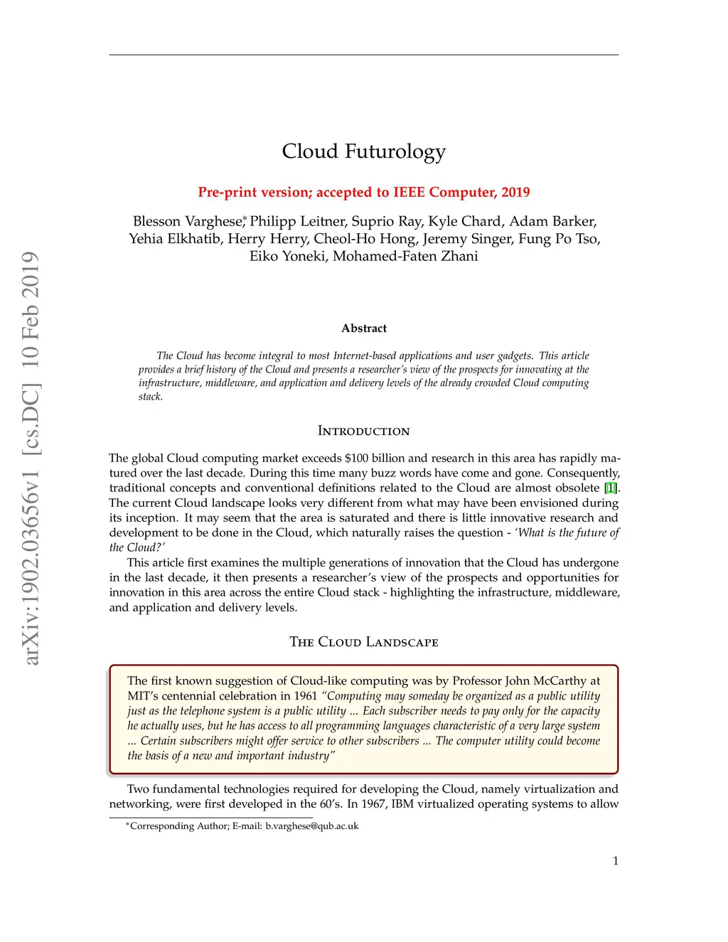 The Cloud has become integral to most Internet-based applications and user gadgets. This article provides a brief history of the Cloud and presents a researcher's view of the prospects for innovating at the infrastructure, middleware, and application and delivery levels of the already crowded Cloud computing stack.