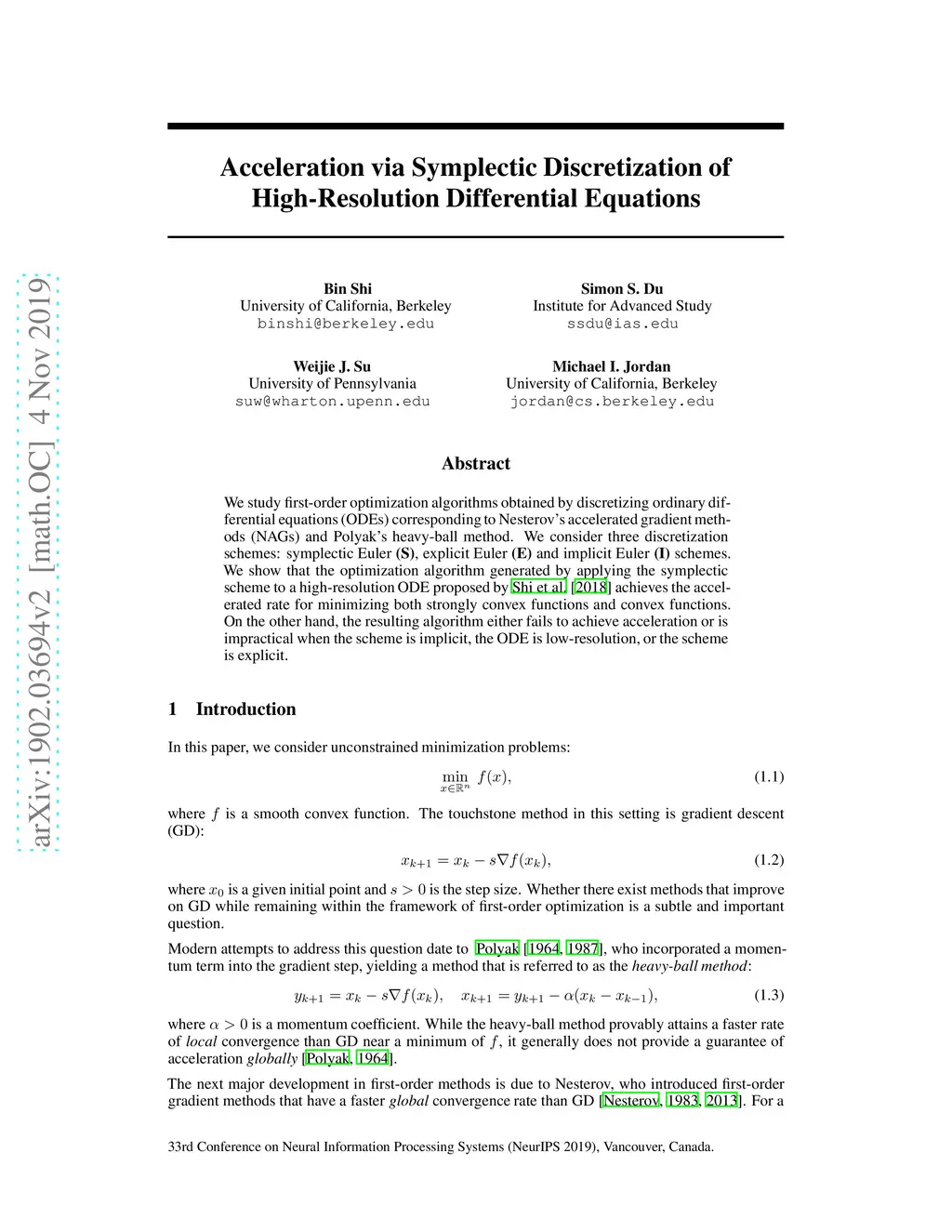 We study first-order optimization methods obtained by discretizing ordinary differential equations (ODEs) corresponding to Nesterov's accelerated gradient methods (NAGs) and Polyak's heavy-ball method. We consider three discretization schemes: an explicit Euler scheme, an implicit Euler scheme, and a symplectic scheme. We show that the optimization algorithm generated by applying the symplectic scheme to a high-resolution ODE proposed by Shi et al. [2018] achieves an accelerated rate for minimizing smooth strongly convex functions. On the other hand, the resulting algorithm either fails to achieve acceleration or is impractical when the scheme is implicit, the ODE is low-resolution, or the scheme is explicit.