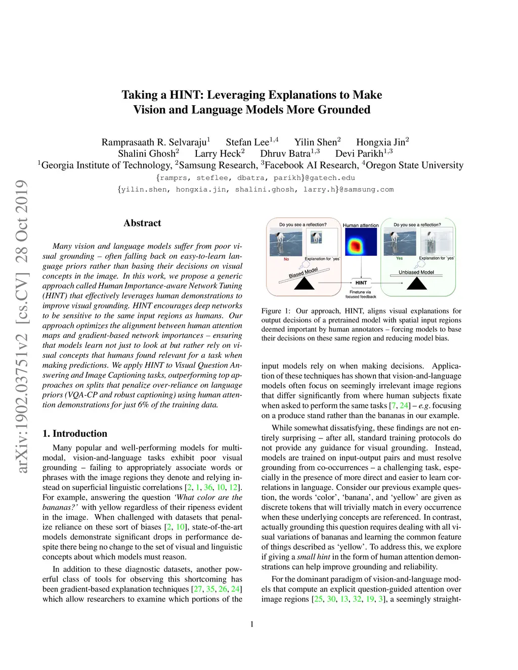 Taking a HINT: Leveraging Explanations to Make Vision and Language