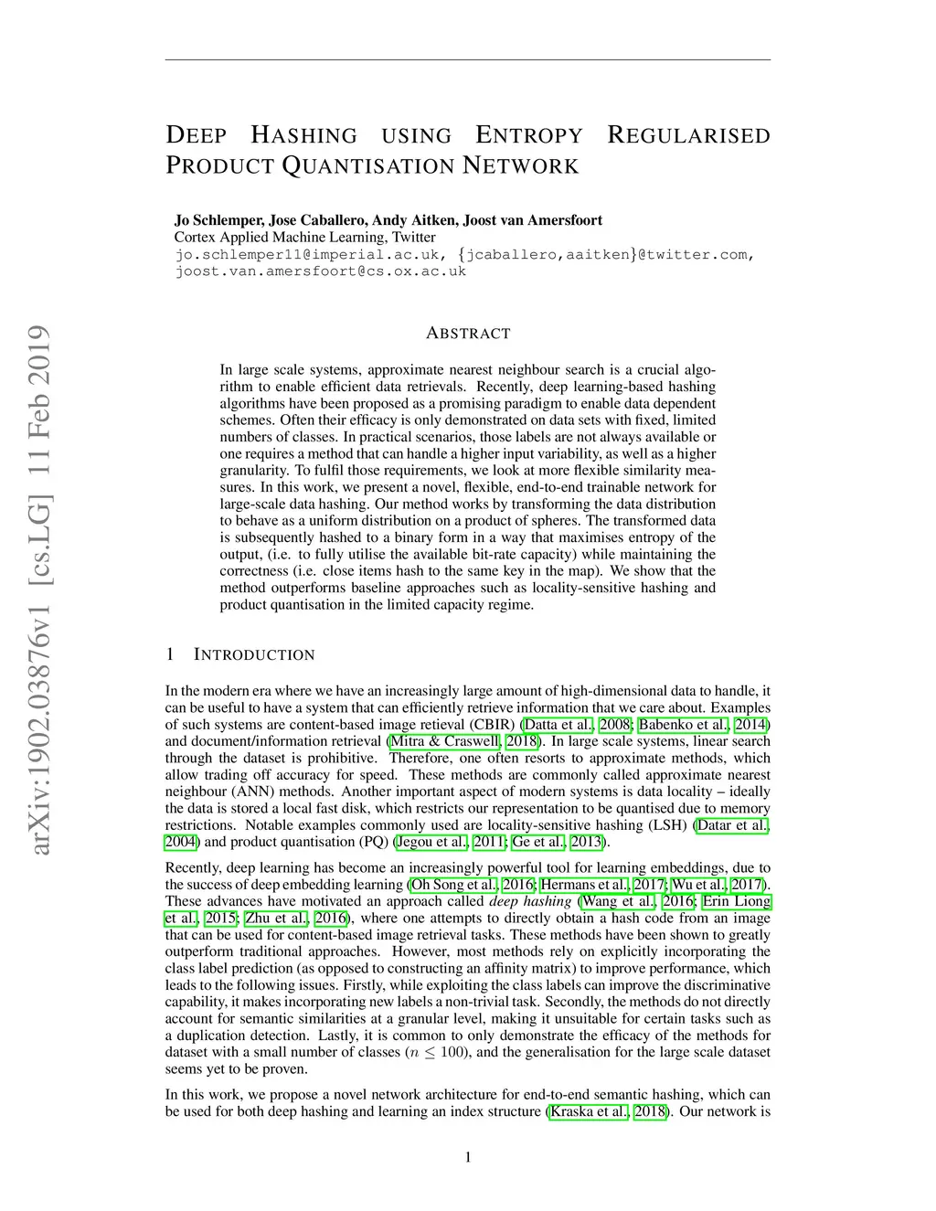Deep Hashing using Entropy Regularised Product Quantisation Network