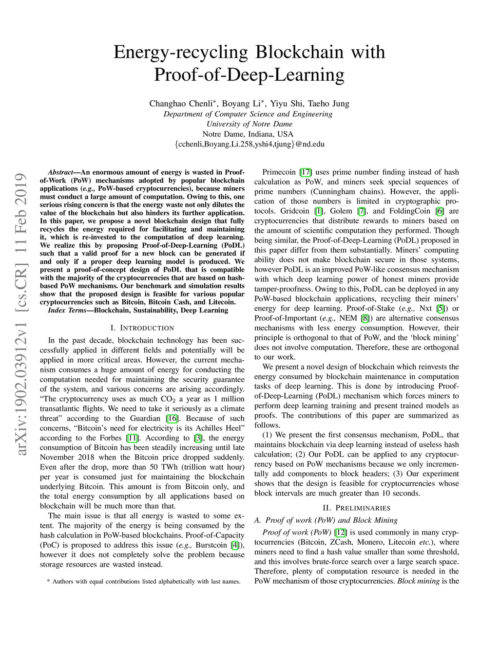 Energy-recycling Blockchain with Proof-of-Deep-Learning
