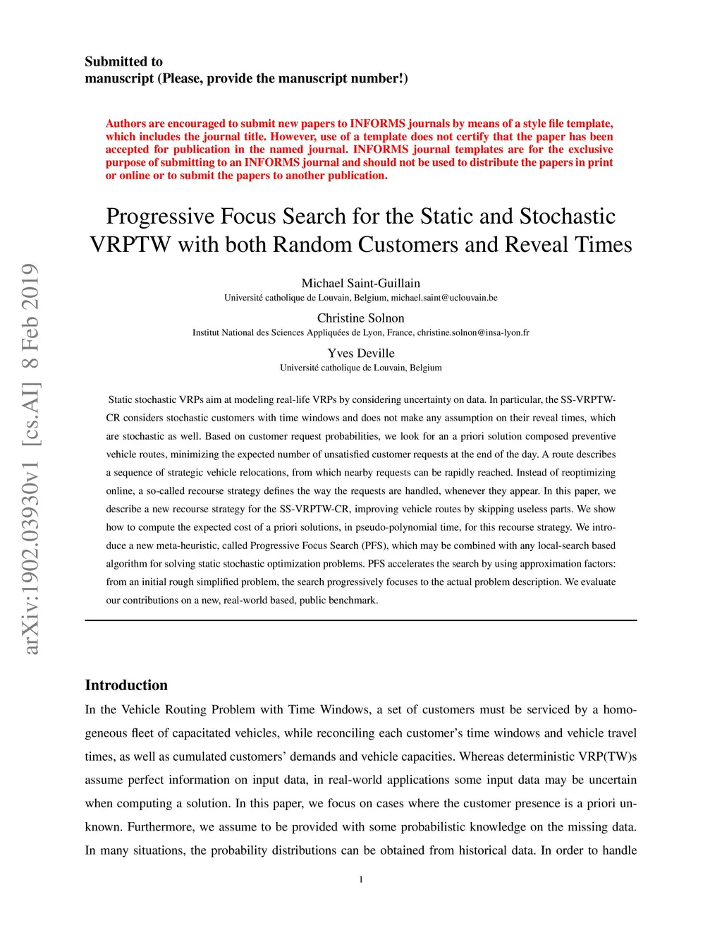Progressive Focus Search for the Static and Stochastic VRPTW with both