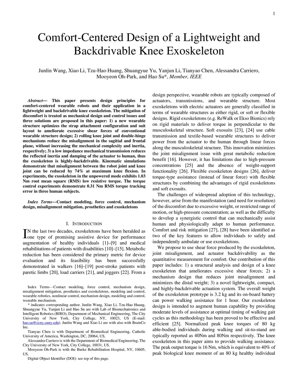 Comfort-Centered Design of a Lightweight and Backdrivable Knee