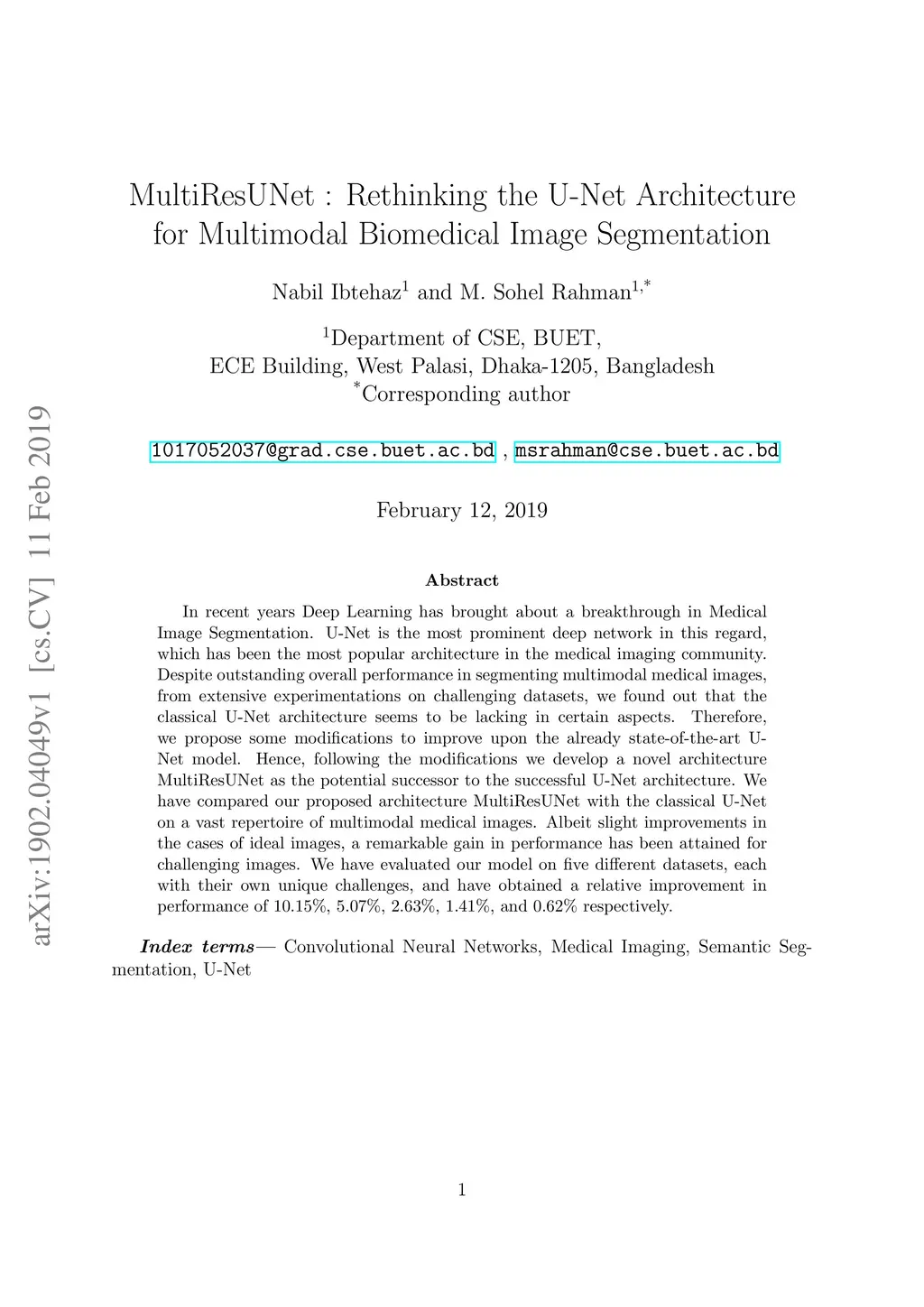 MultiResUNet : Rethinking the U-Net Architecture for Multimodal