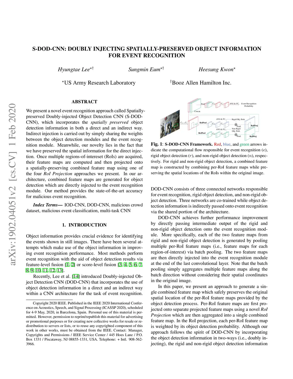 We present a novel event recognition approach called Spatially-preserved Doubly-injected Object Detection CNN (S-DOD-CNN), which incorporates the spatially preserved object detection information in both a direct and an indirect way. Indirect injection is carried out by simply sharing the weights between the object detection modules and the event recognition module. Meanwhile, our novelty lies in the fact that we have preserved the spatial information for the direct injection. Once multiple regions-of-intereset (RoIs) are acquired, their feature maps are computed and then projected onto a spatially-preserving combined feature map using one of the four RoI Projection approaches we present. In our architecture, combined feature maps are generated for object detection which are directly injected to the event recognition module. Our method provides the state-of-the-art accuracy for malicious event recognition.