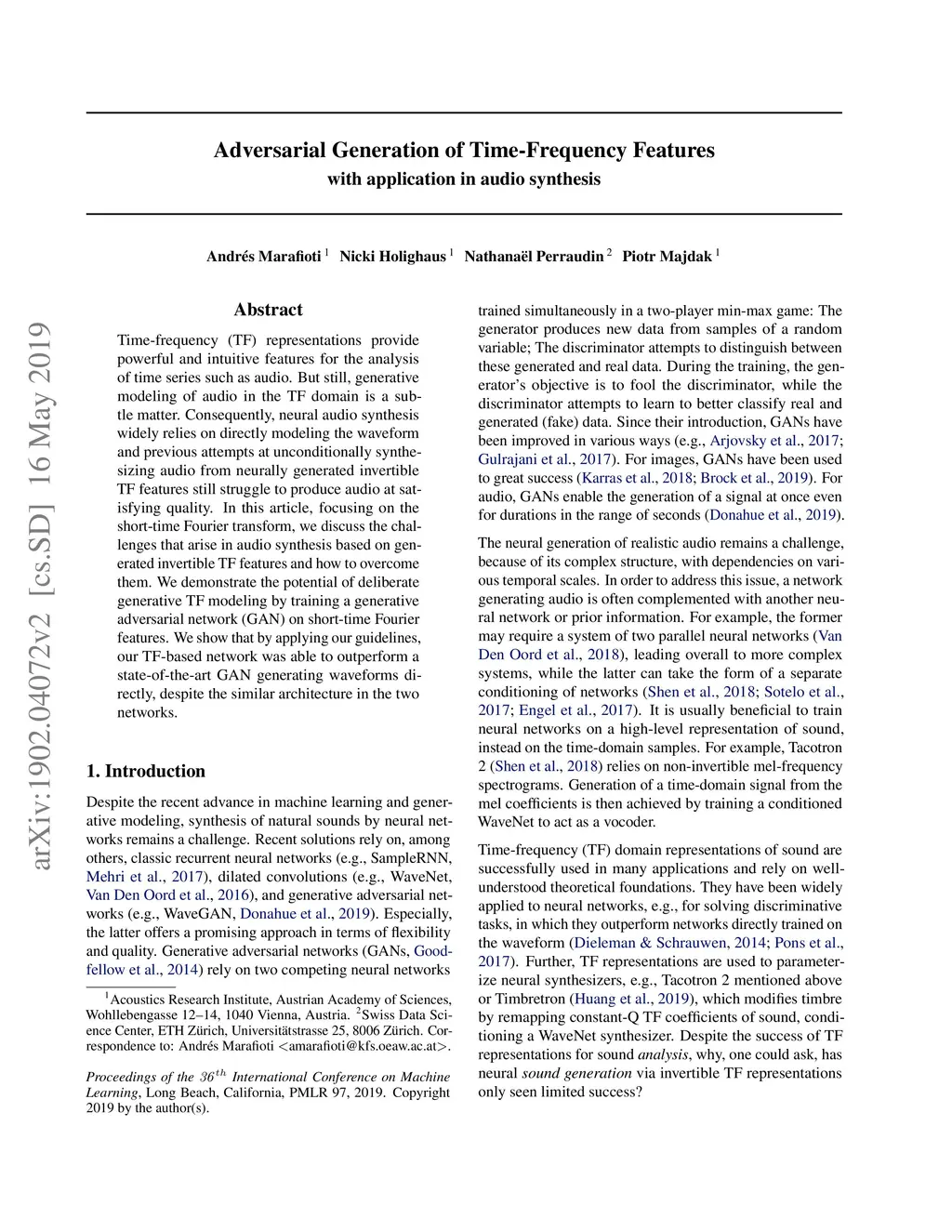 Adversarial Generation of Time-Frequency Features with application in