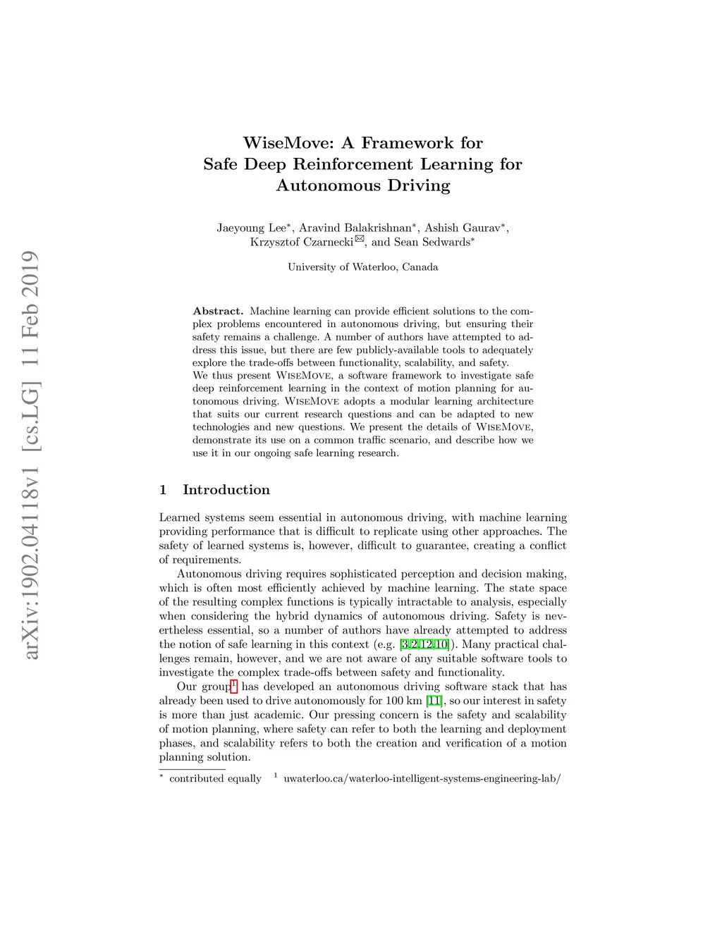 Machine learning can provide efficient solutions to the complex problems encountered in autonomous driving, but ensuring their safety remains a challenge. A number of authors have attempted to address this issue, but there are few publicly-available tools to adequately explore the trade-offs between functionality, scalability, and safety. We thus present WiseMove, a software framework to investigate safe deep reinforcement learning in the context of motion planning for autonomous driving. WiseMove adopts a modular learning architecture that suits our current research questions and can be adapted to new technologies and new questions. We present the details of WiseMove, demonstrate its use on a common traffic scenario, and describe how we use it in our ongoing safe learning research.