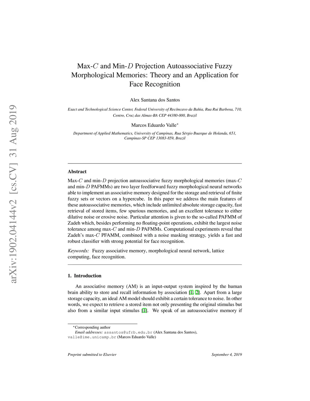 Max-C and Min-D Projection Autoassociative Fuzzy Morphological Memories: