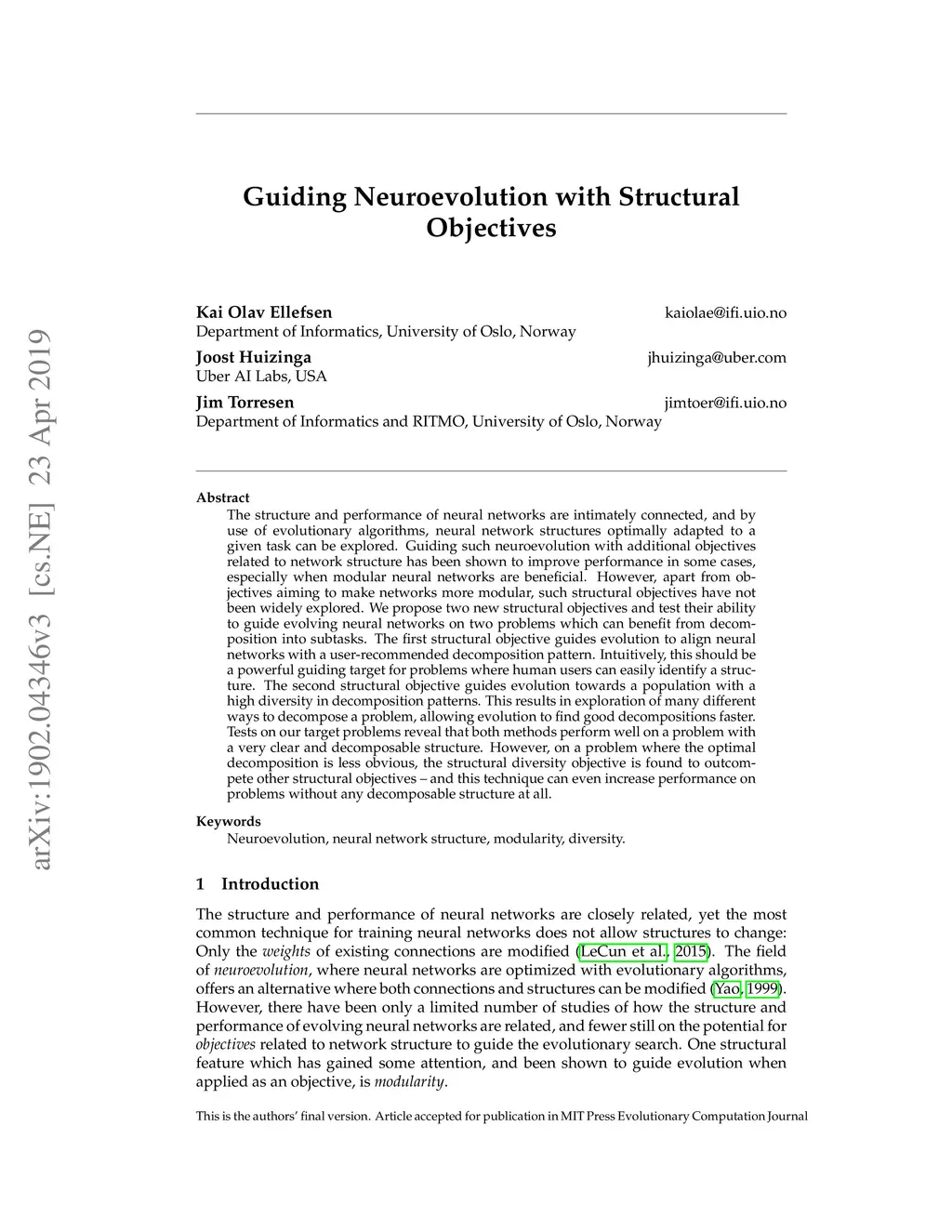 The structure and performance of neural networks are intimately connected, and by use of evolutionary algorithms, neural network structures optimally adapted to a given task can be explored. Guiding such neuroevolution with additional objectives related to network structure has been shown to improve performance in some cases, especially when modular neural networks are beneficial. However, apart from objectives aiming to make networks more modular, such structural objectives have not been widely explored. We propose two new structural objectives and test their ability to guide evolving neural networks on two problems which can benefit from decomposition into subtasks. The first structural objective guides evolution to align neural networks with a user-recommended decomposition pattern. Intuitively, this should be a powerful guiding target for problems where human users can easily identify a structure. The second structural objective guides evolution towards a population with a high diversity in decomposition patterns. This results in exploration of many different ways to decompose a problem, allowing evolution to find good decompositions faster. Tests on our target problems reveal that both methods perform well on a problem with a very clear and decomposable structure. However, on a problem where the optimal decomposition is less obvious, the structural diversity objective is found to outcompete other structural objectives -- and this technique can even increase performance on problems without any decomposable structure at all.