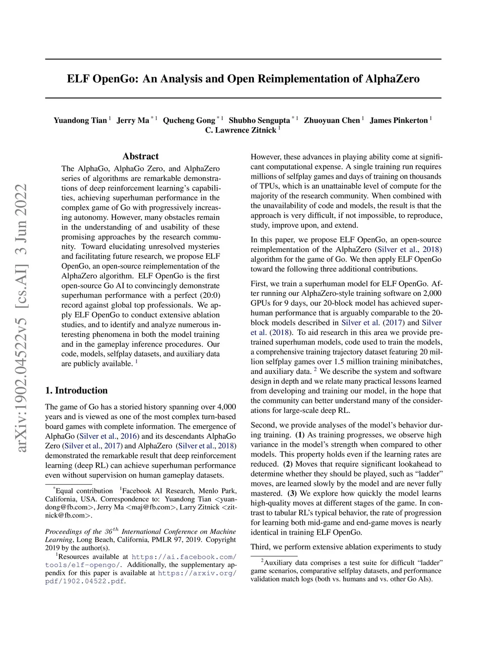 ELF OpenGo: An Analysis and Open Reimplementation of AlphaZero