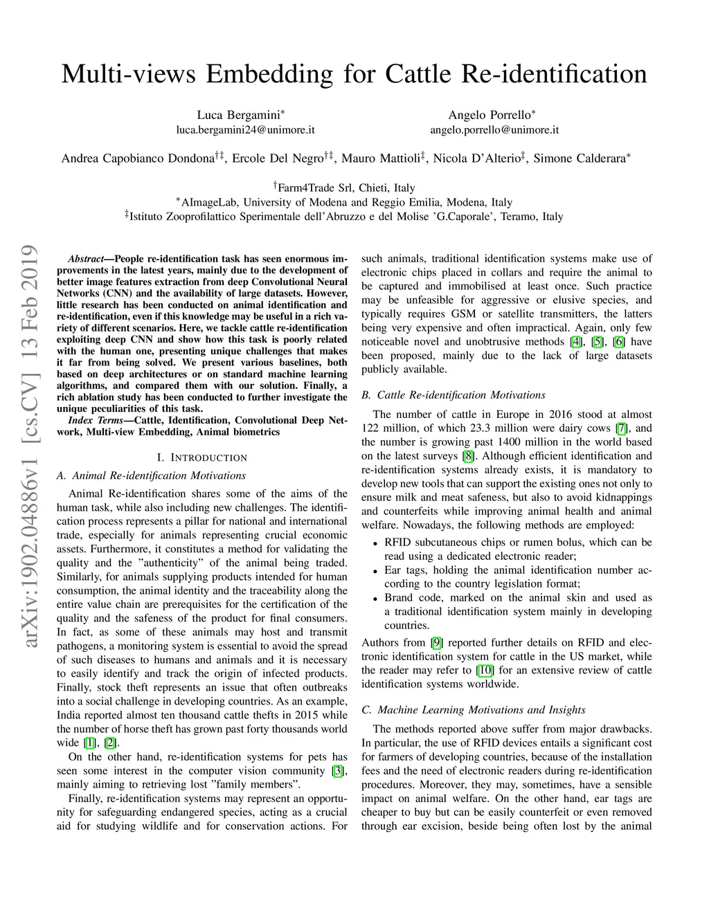 Multi-views Embedding for Cattle Re-identification