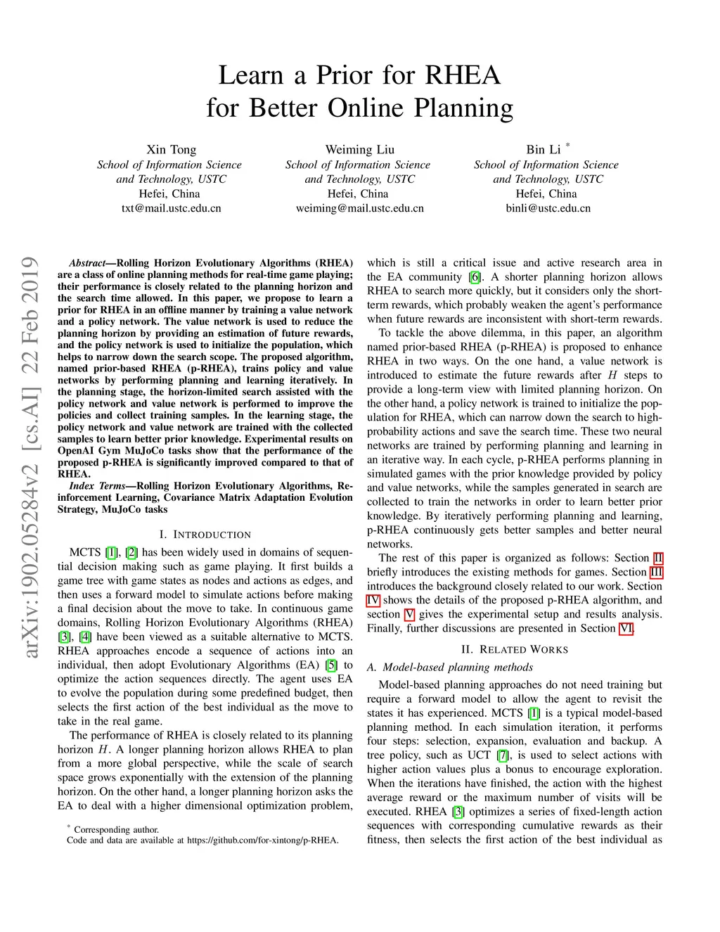 Learn a Prior for RHEA for Better Online Planning
