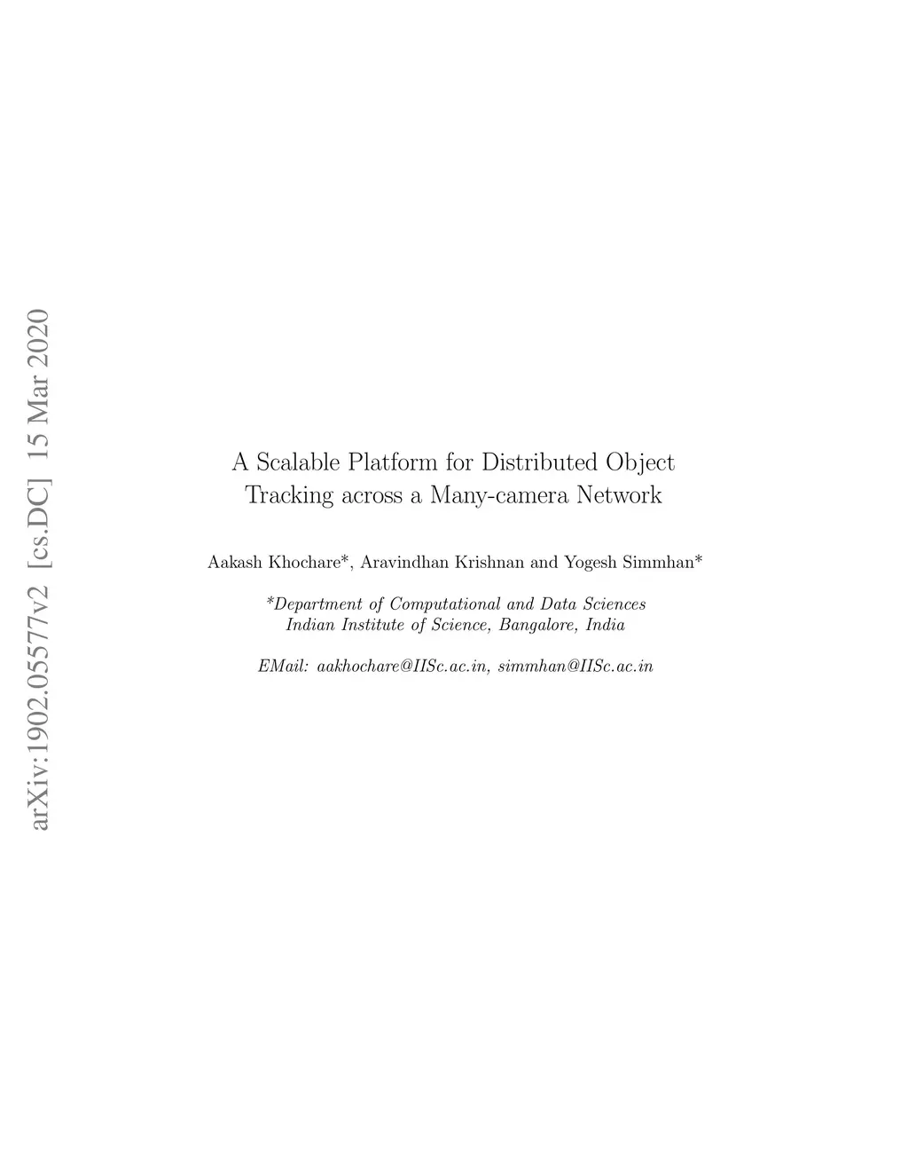 A Scalable Platform for Distributed Object Tracking across a Many-camera