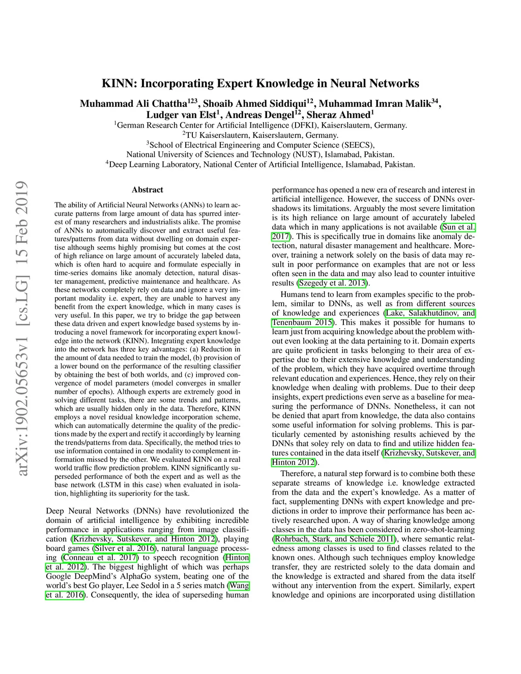 The promise of ANNs to automatically discover and extract useful features/patterns from data without dwelling on domain expertise although seems highly promising but comes at the cost of high reliance on large amount of accurately labeled data, which is often hard to acquire and formulate especially in time-series domains like anomaly detection, natural disaster management, predictive maintenance and healthcare. As these networks completely rely on data and ignore a very important modality i.e. expert, they are unable to harvest any benefit from the expert knowledge, which in many cases is very useful. In this paper, we try to bridge the gap between these data driven and expert knowledge based systems by introducing a novel framework for incorporating expert knowledge into the network (KINN). Integrating expert knowledge into the network has three key advantages: (a) Reduction in the amount of data needed to train the model, (b) provision of a lower bound on the performance of the resulting classifier by obtaining the best of both worlds, and (c) improved convergence of model parameters (model converges in smaller number of epochs). Although experts are extremely good in solving different tasks, there are some trends and patterns, which are usually hidden only in the data. Therefore, KINN employs a novel residual knowledge incorporation scheme, which can automatically determine the quality of the predictions made by the expert and rectify it accordingly by learning the trends/patterns from data. Specifically, the method tries to use information contained in one modality to complement information missed by the other. We evaluated KINN on a real world traffic flow prediction problem. KINN significantly superseded performance of both the expert and as well as the base network (LSTM in this case) when evaluated in isolation, highlighting its superiority for the task.