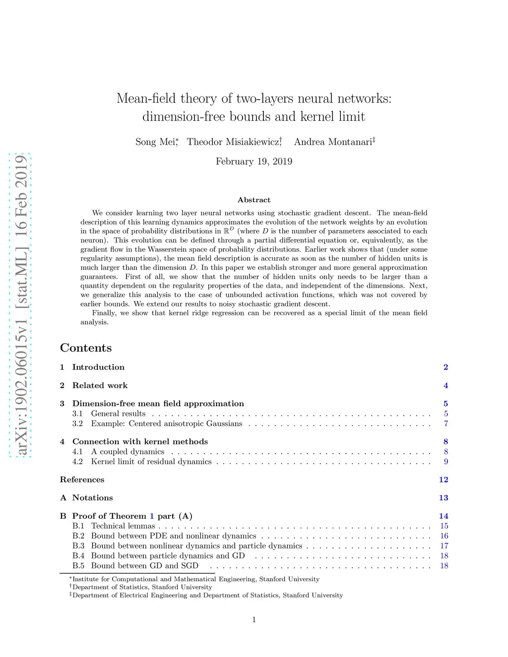 We consider learning two layer neural networks using stochastic gradient descent. The mean-field description of this learning dynamics approximates the evolution of the network weights by an evolution in the space of probability distributions in (where is the number of parameters associated to each neuron). This evolution can be defined through a partial differential equation or, equivalently, as the gradient flow in the Wasserstein space of probability distributions. Earlier work shows that (under some regularity assumptions), the mean field description is accurate as soon as the number of hidden units is much larger than the dimension . In this paper we establish stronger and more general approximation guarantees. First of all, we show that the number of hidden units only needs to be larger than a quantity dependent on the regularity properties of the data, and independent of the dimensions. Next, we generalize this analysis to the case of unbounded activation functions, which was not covered by earlier bounds. We extend our results to noisy stochastic gradient descent. Finally, we show that kernel ridge regression can be recovered as a special limit of the mean field analysis.
