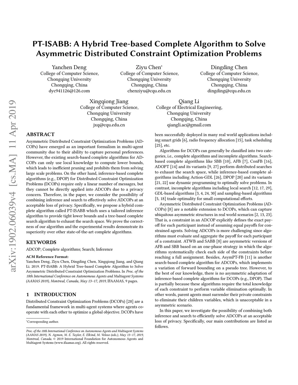 PT-ISABB: A Hybrid Tree-based Complete Algorithm to Solve Asymmetric Distributed Constraint Optimization Problems