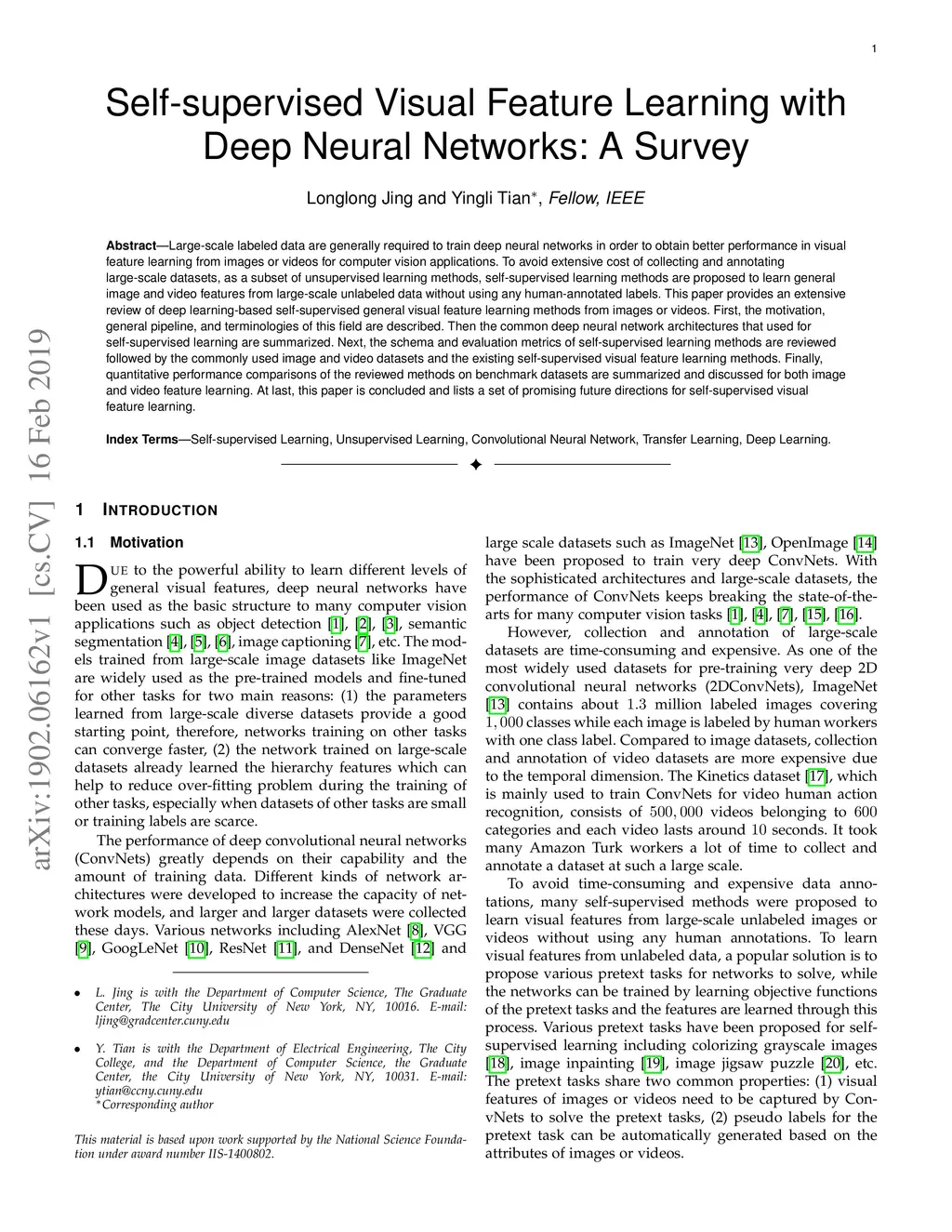 Self-supervised Visual Feature Learning with Deep Neural Networks: A