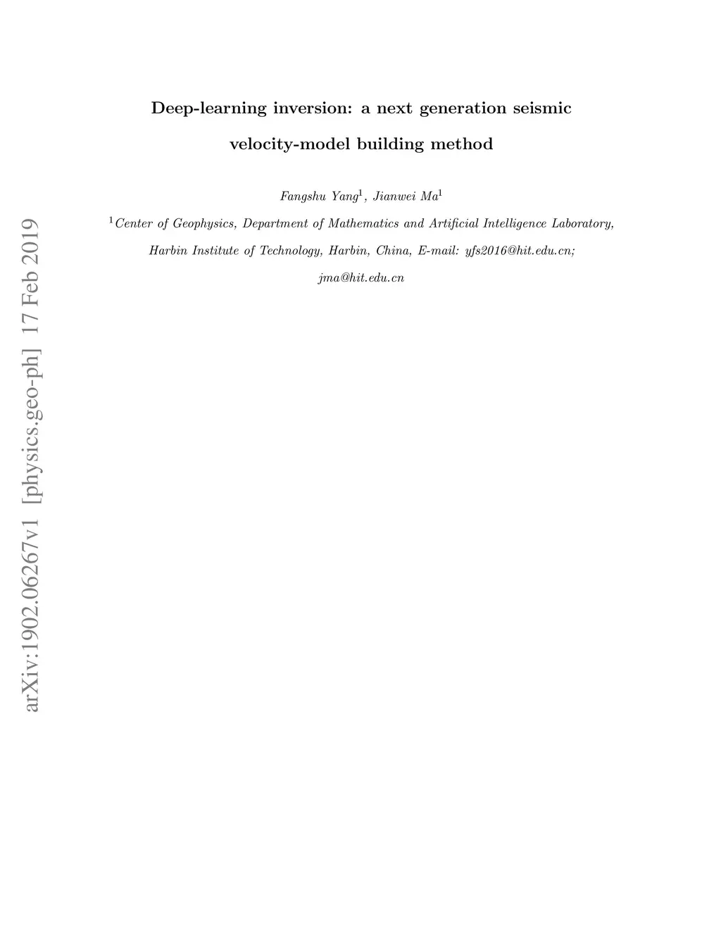 Seismic velocity is one of the most important parameters used in seismic exploration. Accurate velocity models are key prerequisites for reverse-time migration and other high-resolution seismic imaging techniques. Such velocity information has traditionally been derived by tomography or full-waveform inversion (FWI), which are time consuming and computationally expensive, and they rely heavily on human interaction and quality control. We investigate a novel method based on the supervised deep fully convolutional neural network (FCN) for velocity-model building (VMB) directly from raw seismograms. Unlike the conventional inversion method based on physical models, the supervised deep-learning methods are based on big-data training rather than prior-knowledge assumptions. During the training stage, the network establishes a nonlinear projection from the multi-shot seismic data to the corresponding velocity models. During the prediction stage, the trained network can be used to estimate the velocity models from the new input seismic data. One key characteristic of the deep-learning method is that it can automatically extract multi-layer useful features without the need for human-curated activities and initial velocity setup. The data-driven method usually requires more time during the training stage, and actual predictions take less time, with only seconds needed. Therefore, the computational time of geophysical inversions, including real-time inversions, can be dramatically reduced once a good generalized network is built. By using numerical experiments on synthetic models, the promising performances of our proposed method are shown in comparison with conventional FWI even when the input data are in more realistic scenarios. Discussions on the deep-learning methods, training dataset, lack of low frequencies, and advantages and disadvantages of the new method are also provided.