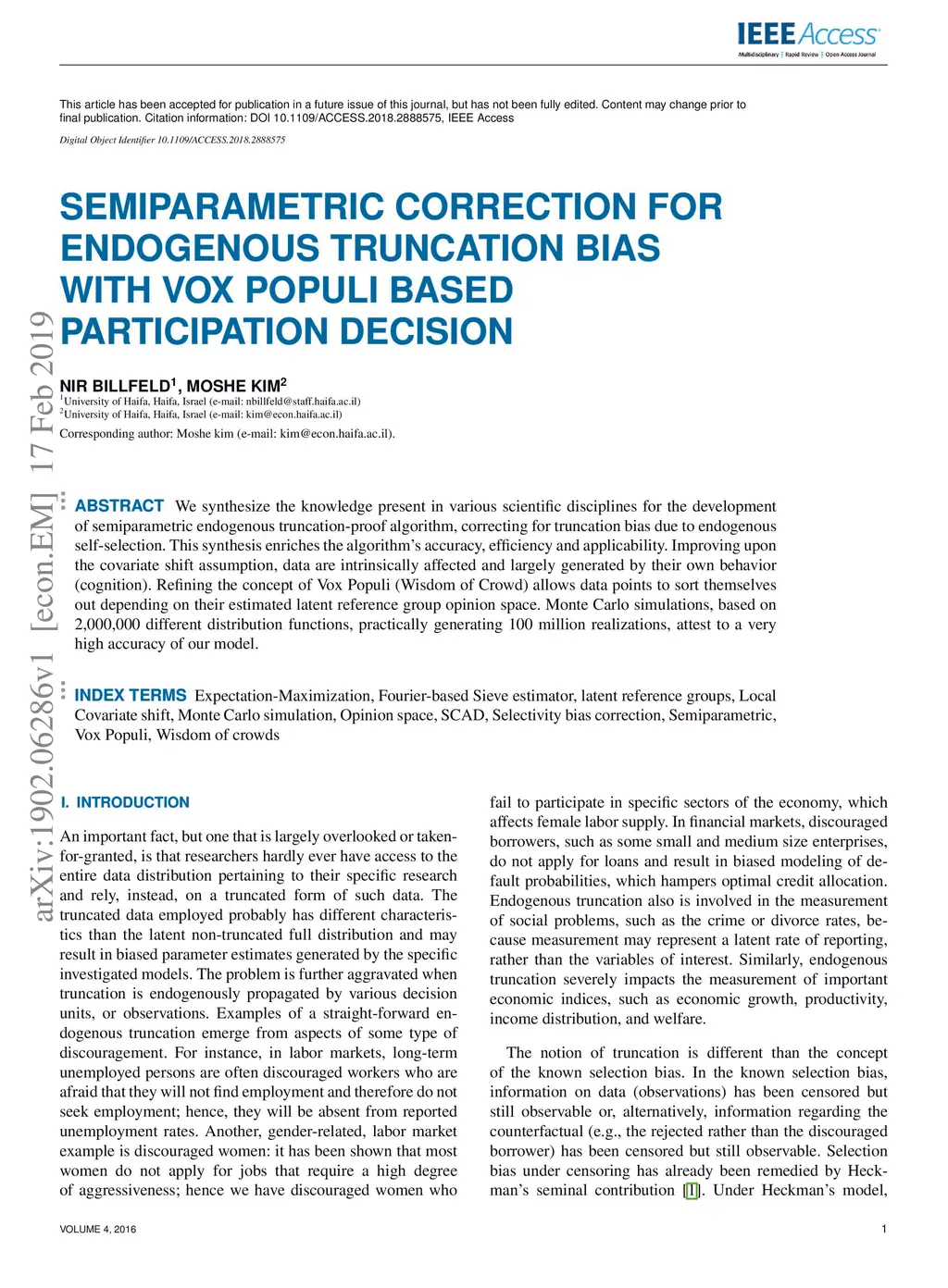 Semiparametric correction for endogenous truncation bias with Vox Populi