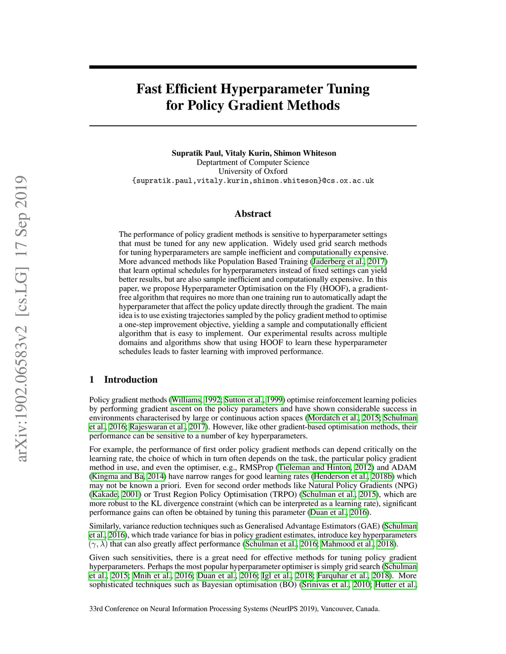 Fast Efficient Hyperparameter Tuning for Policy Gradients