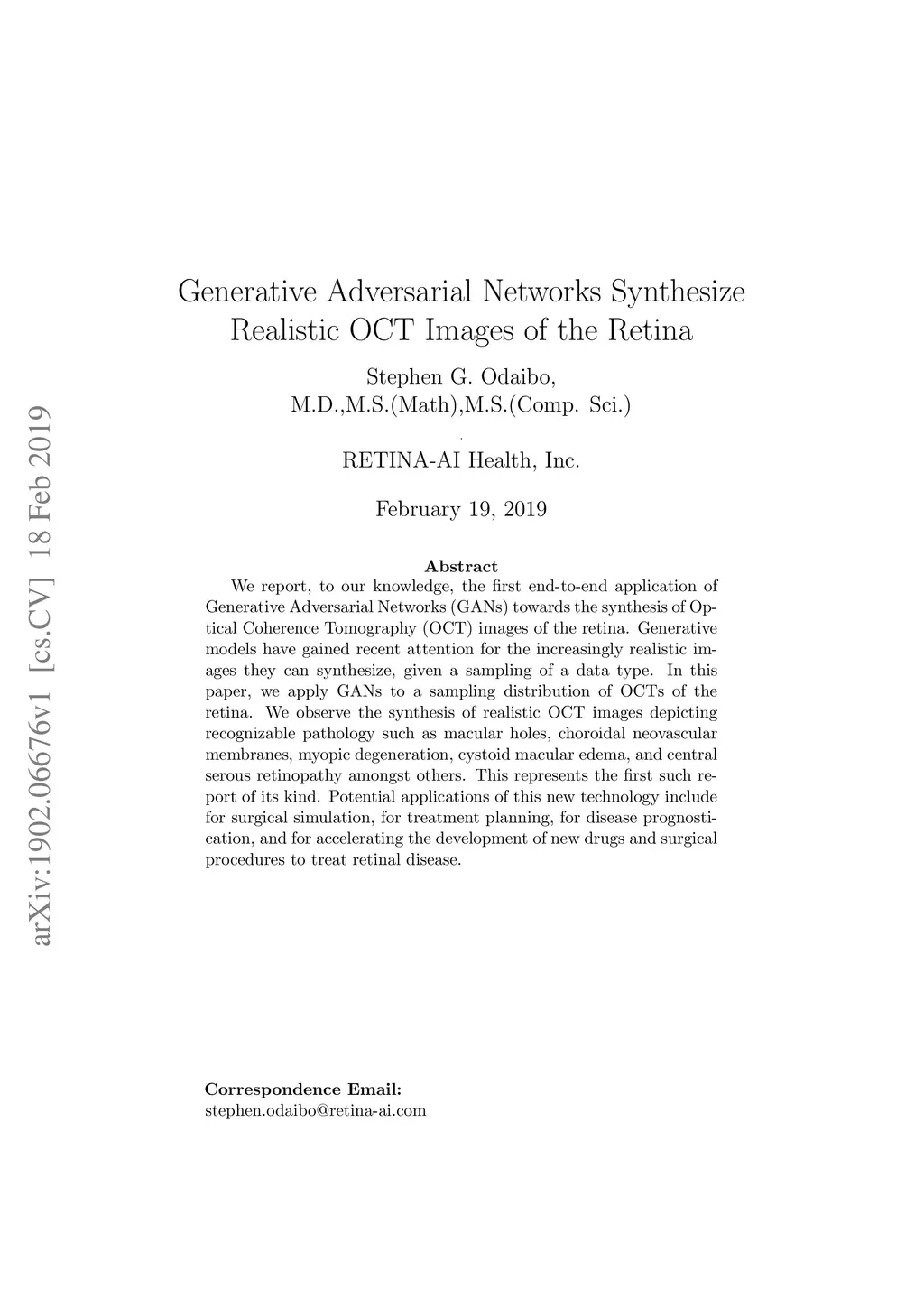 We report, to our knowledge, the first end-to-end application of Generative Adversarial Networks (GANs) towards the synthesis of Optical Coherence Tomography (OCT) images of the retina. Generative models have gained recent attention for the increasingly realistic images they can synthesize, given a sampling of a data type. In this paper, we apply GANs to a sampling distribution of OCTs of the retina. We observe the synthesis of realistic OCT images depicting recognizable pathology such as macular holes, choroidal neovascular membranes, myopic degeneration, cystoid macular edema, and central serous retinopathy amongst others. This represents the first such report of its kind. Potential applications of this new technology include for surgical simulation, for treatment planning, for disease prognostication, and for accelerating the development of new drugs and surgical procedures to treat retinal disease.