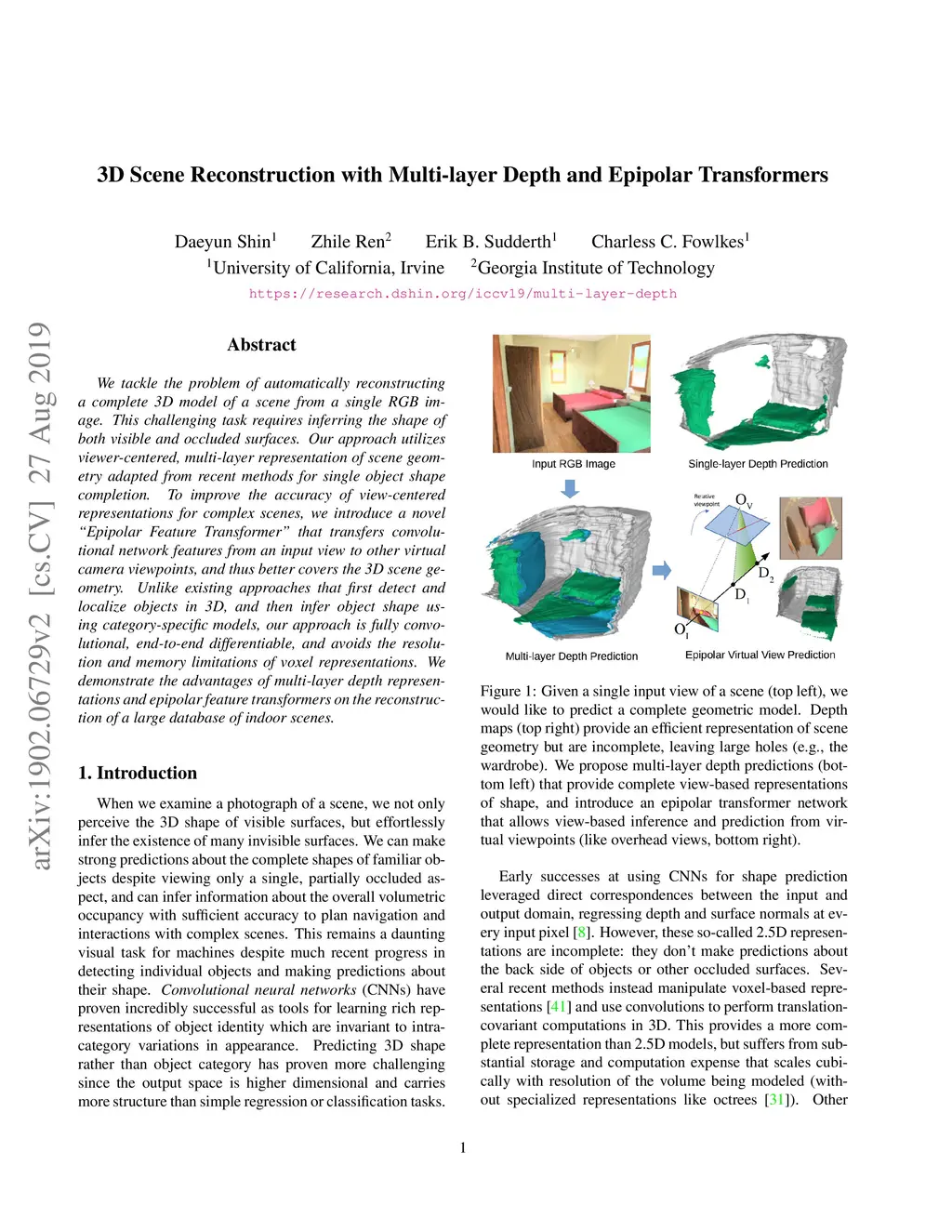 3D Scene Reconstruction with Multi-layer Depth and Epipolar Transformers