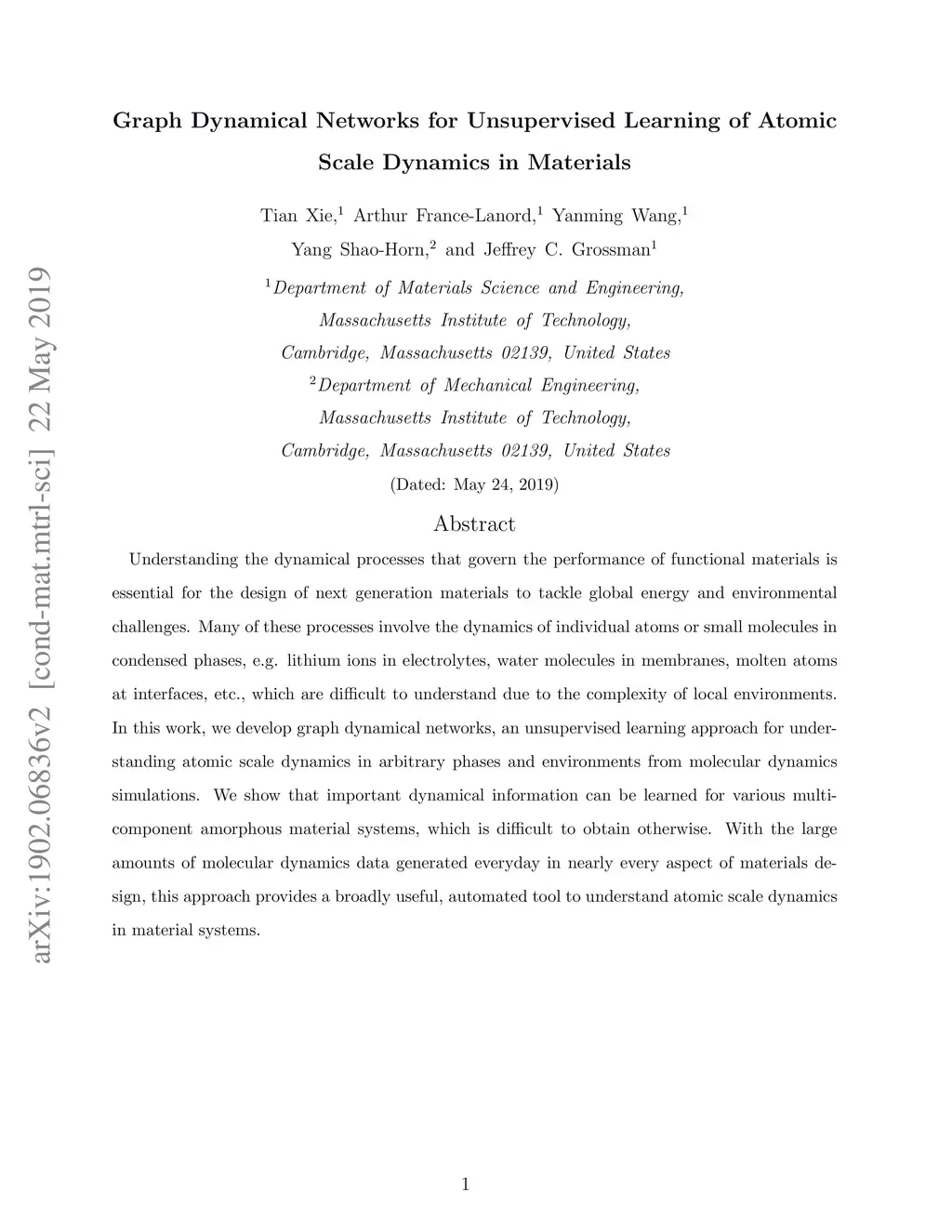 Graph Dynamical Networks for Unsupervised Learning of Atomic Scale