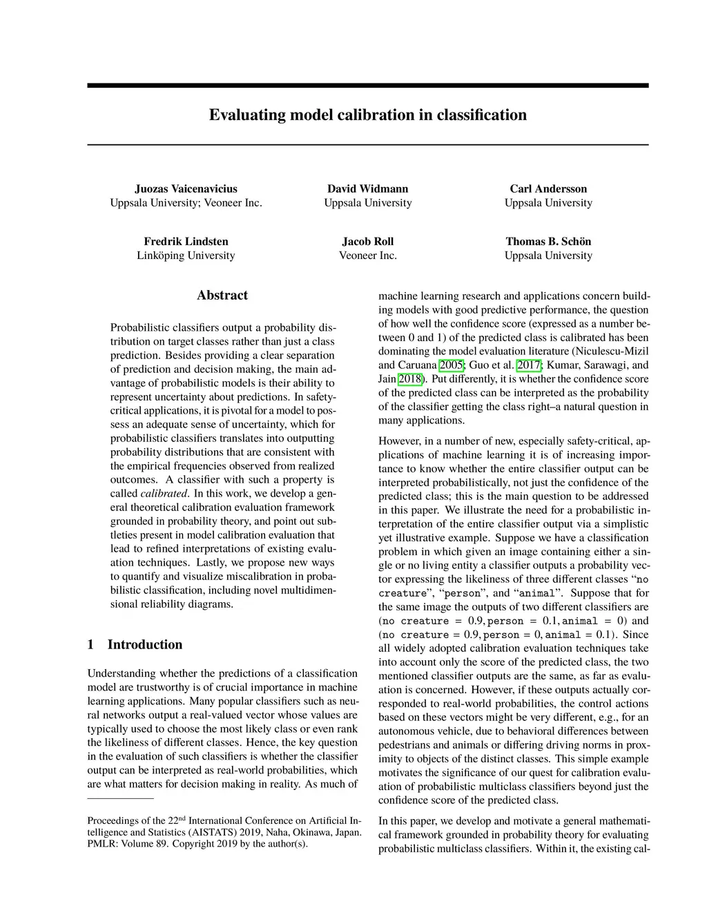 Probabilistic classifiers output a probability distribution on target classes rather than just a class prediction. Besides providing a clear separation of prediction and decision making, the main advantage of probabilistic models is their ability to represent uncertainty about predictions. In safety-critical applications, it is pivotal for a model to possess an adequate sense of uncertainty, which for probabilistic classifiers translates into outputting probability distributions that are consistent with the empirical frequencies observed from realized outcomes. A classifier with such a property is called calibrated. In this work, we develop a general theoretical calibration evaluation framework grounded in probability theory, and point out subtleties present in model calibration evaluation that lead to refined interpretations of existing evaluation techniques. Lastly, we propose new ways to quantify and visualize miscalibration in probabilistic classification, including novel multidimensional reliability diagrams.