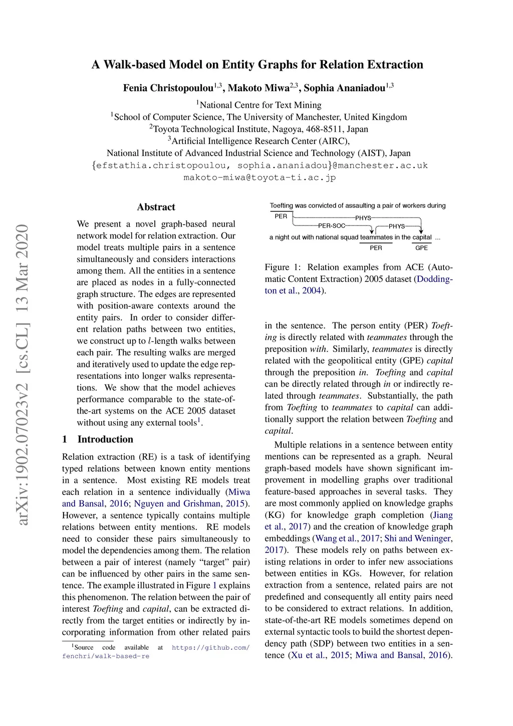 A Walk-based Model on Entity Graphs for Relation Extraction