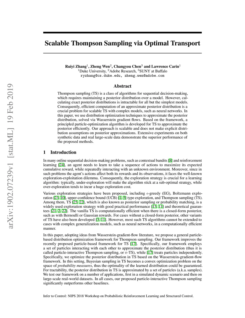 Scalable Thompson Sampling via Optimal Transport