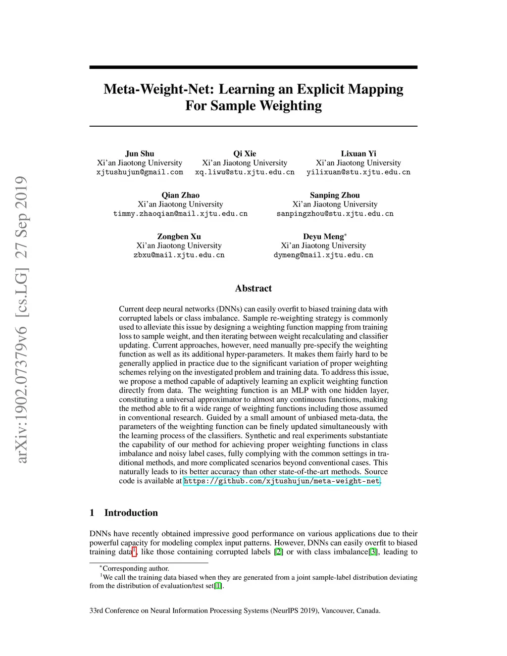 Meta-Weight-Net: Learning an Explicit Mapping For Sample Weighting