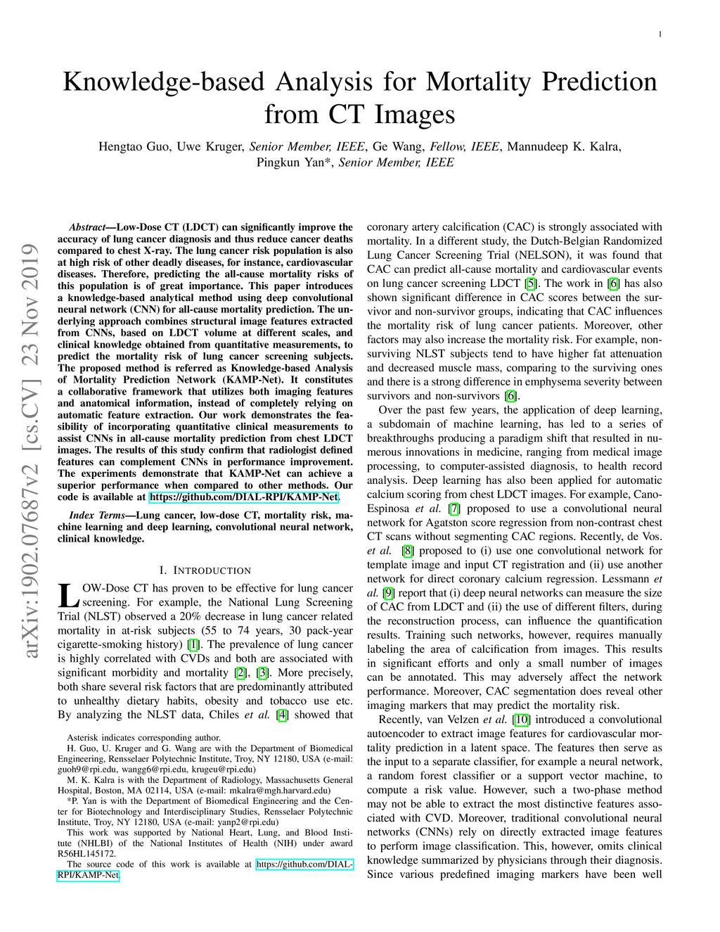 Knowledge-based Analysis for Mortality Prediction from CT Images