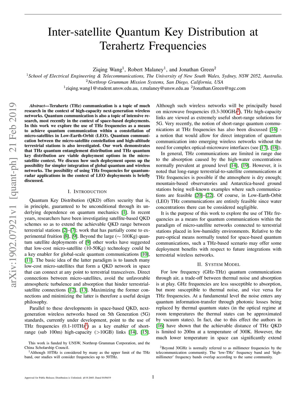 Terahertz (THz) communication is a topic of much research in the context of high-capacity next-generation wireless networks. Quantum communication is also a topic of intensive research, most recently in the context of space-based deployments. In this work we explore the use of THz frequencies as a means to achieve quantum communication within a constellation of micro-satellites in Low-Earth-Orbit (LEO). Quantum communication between the micro-satellite constellation and high-altitude terrestrial stations is also investigated. Our work demonstrates that THz quantum entanglement distribution and THz quantum key distribution are viable deployment options in the micro-satellite context. We discuss how such deployment opens up the possibility for simpler integration of global quantum and wireless networks. The possibility of using THz frequencies for quantum-radar applications in the context of LEO deployments is briefly discussed.