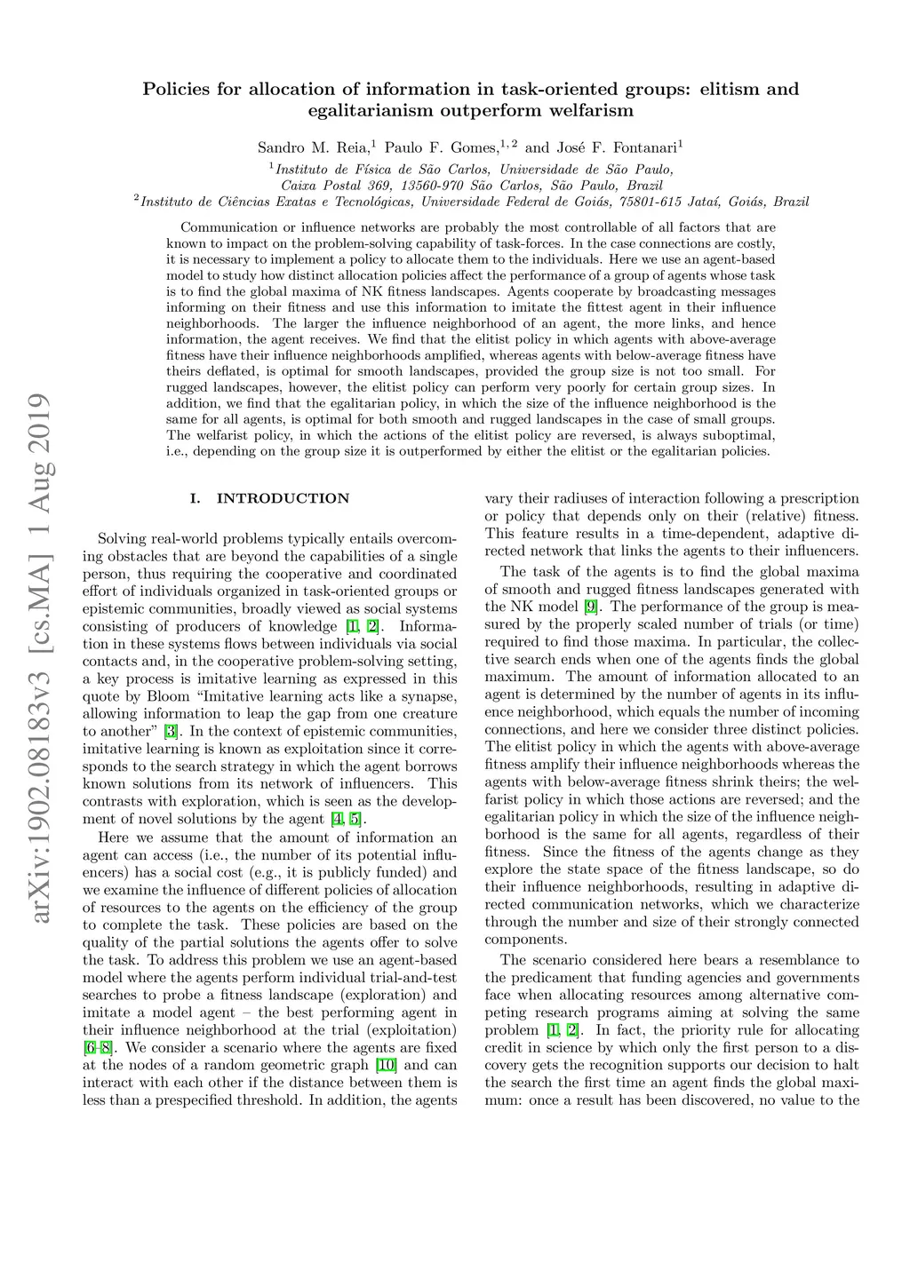 Communication or influence networks are probably the most controllable of all factors that are known to impact on the problem-solving capability of task-forces. In the case connections are costly, it is necessary to implement a policy to allocate them to the individuals. Here we use an agent-based model to study how distinct allocation policies affect the performance of a group of agents whose task is to find the global maxima of NK fitness landscapes. Agents cooperate by broadcasting messages informing on their fitness and use this information to imitate the fittest agent in their influence neighborhoods. The larger the influence neighborhood of an agent, the more links, and hence information, the agent receives. We find that the elitist policy in which agents with above-average fitness have their influence neighborhoods amplified, whereas agents with below-average fitness have theirs deflated, is optimal for smooth landscapes, provided the group size is not too small. For rugged landscapes, however, the elitist policy can perform very poorly for certain group sizes. In addition, we find that the egalitarian policy, in which the size of the influence neighborhood is the same for all agents, is optimal for both smooth and rugged landscapes in the case of small groups. The welfarist policy, in which the actions of the elitist policy are reversed, is always suboptimal, i.e., depending on the group size it is outperformed by either the elitist or the egalitarian policies.