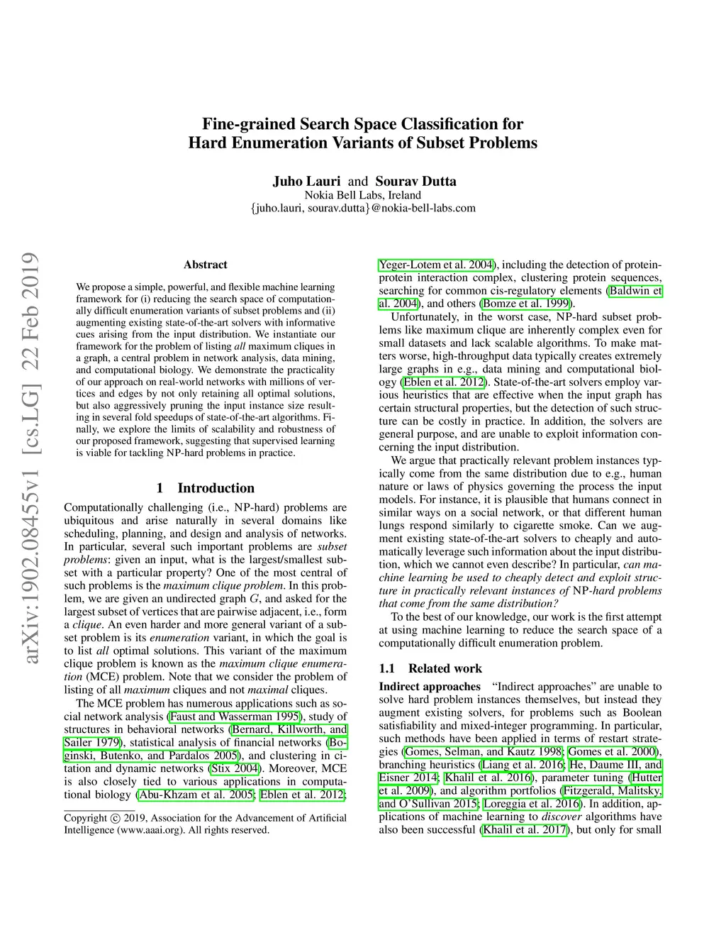 We propose a simple, powerful, and flexible machine learning framework for (i) reducing the search space of computationally difficult enumeration variants of subset problems and (ii) augmenting existing state-of-the-art solvers with informative cues arising from the input distribution. We instantiate our framework for the problem of listing all maximum cliques in a graph, a central problem in network analysis, data mining, and computational biology. We demonstrate the practicality of our approach on real-world networks with millions of vertices and edges by not only retaining all optimal solutions, but also aggressively pruning the input instance size resulting in several fold speedups of state-of-the-art algorithms. Finally, we explore the limits of scalability and robustness of our proposed framework, suggesting that supervised learning is viable for tackling NP-hard problems in practice.